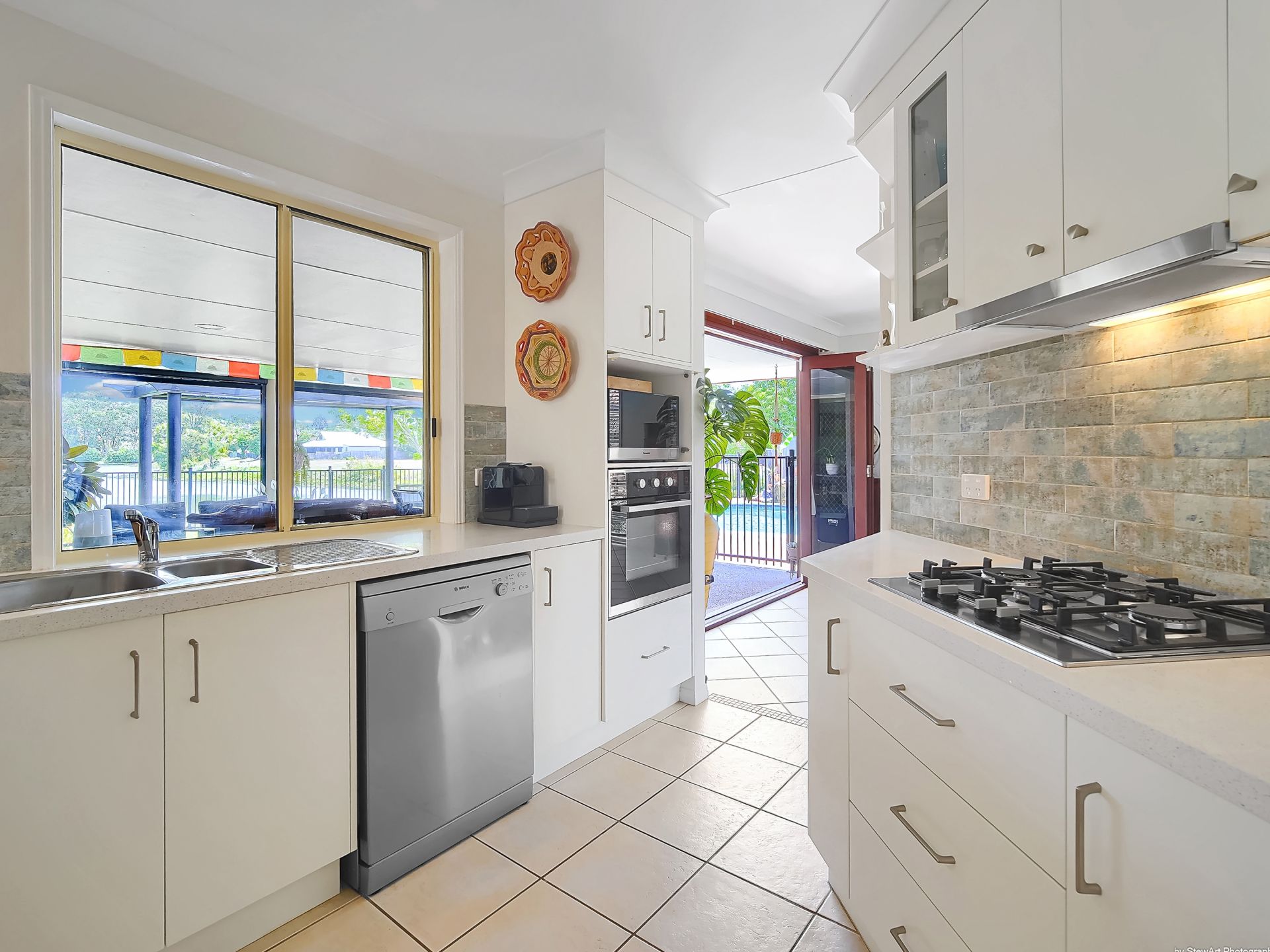 • A well-equipped and refurbished kitchen featuring beautiful 40mm silversilk stone benchtops, a newly tiled splashback, a breakfast bar, and a pantry