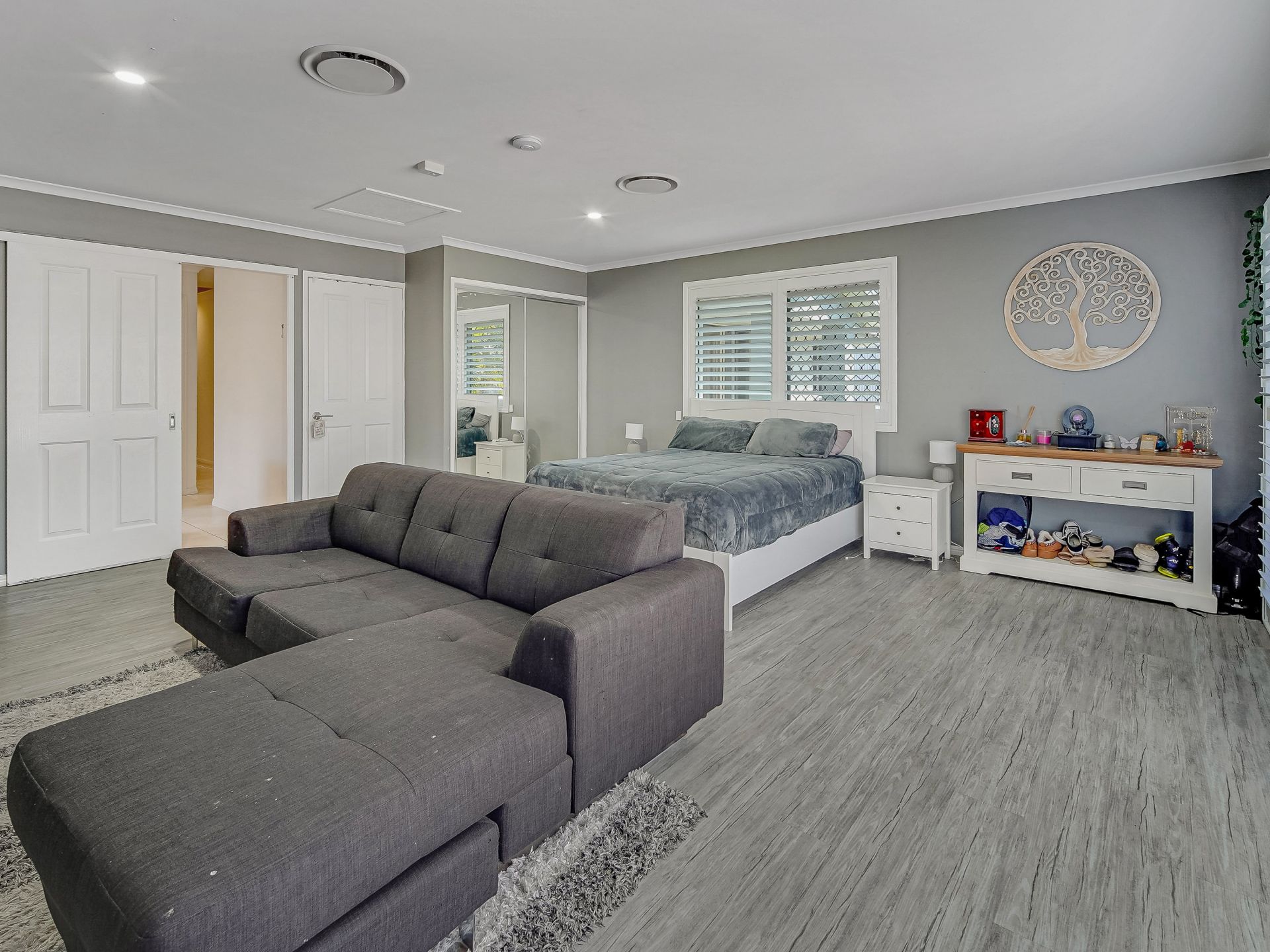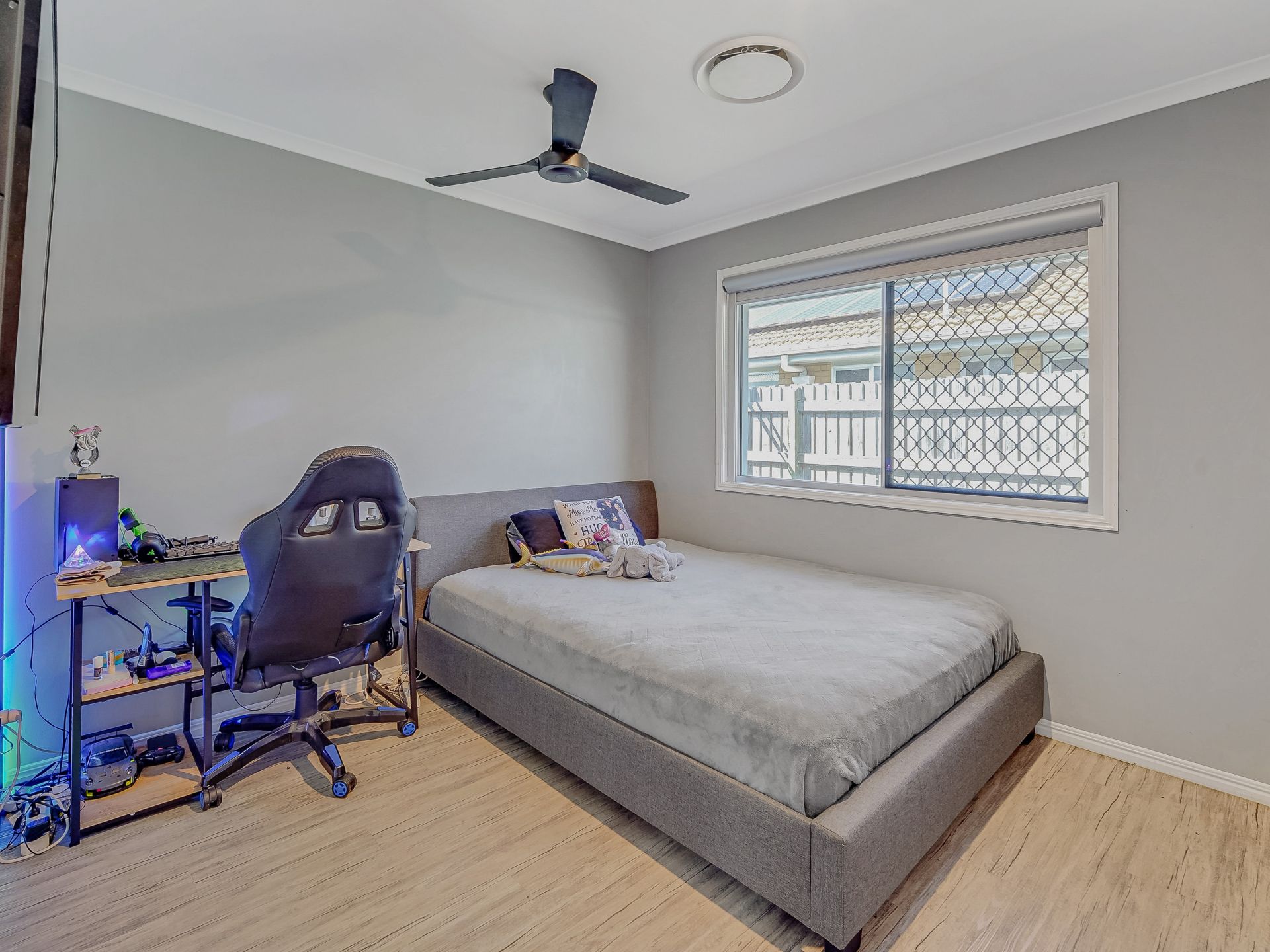 • A large separate media room, currently being used as a bedroom again with ducted air-conditioning