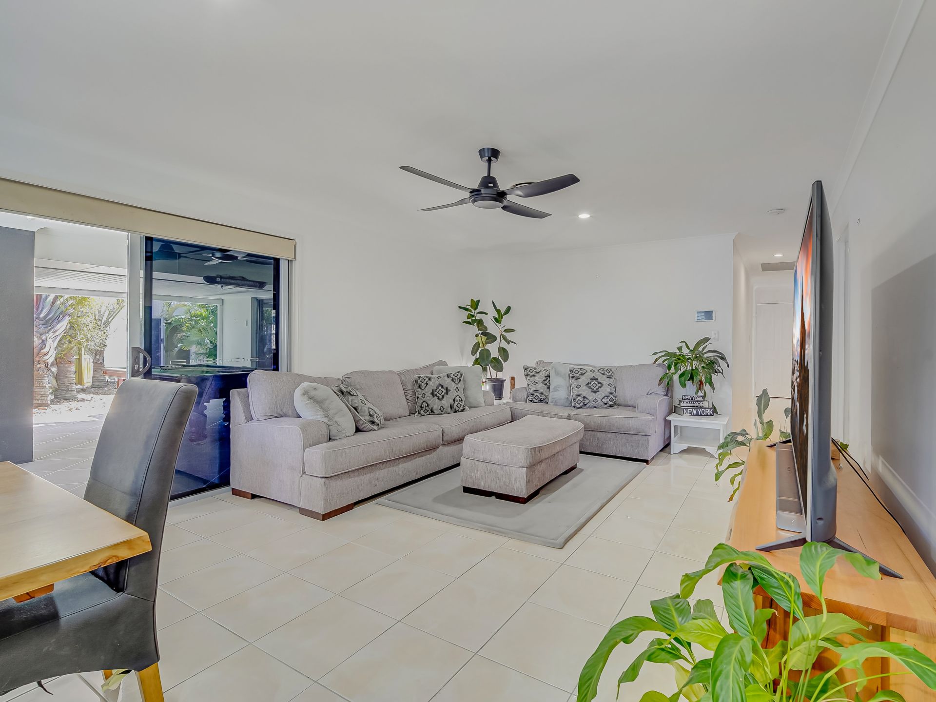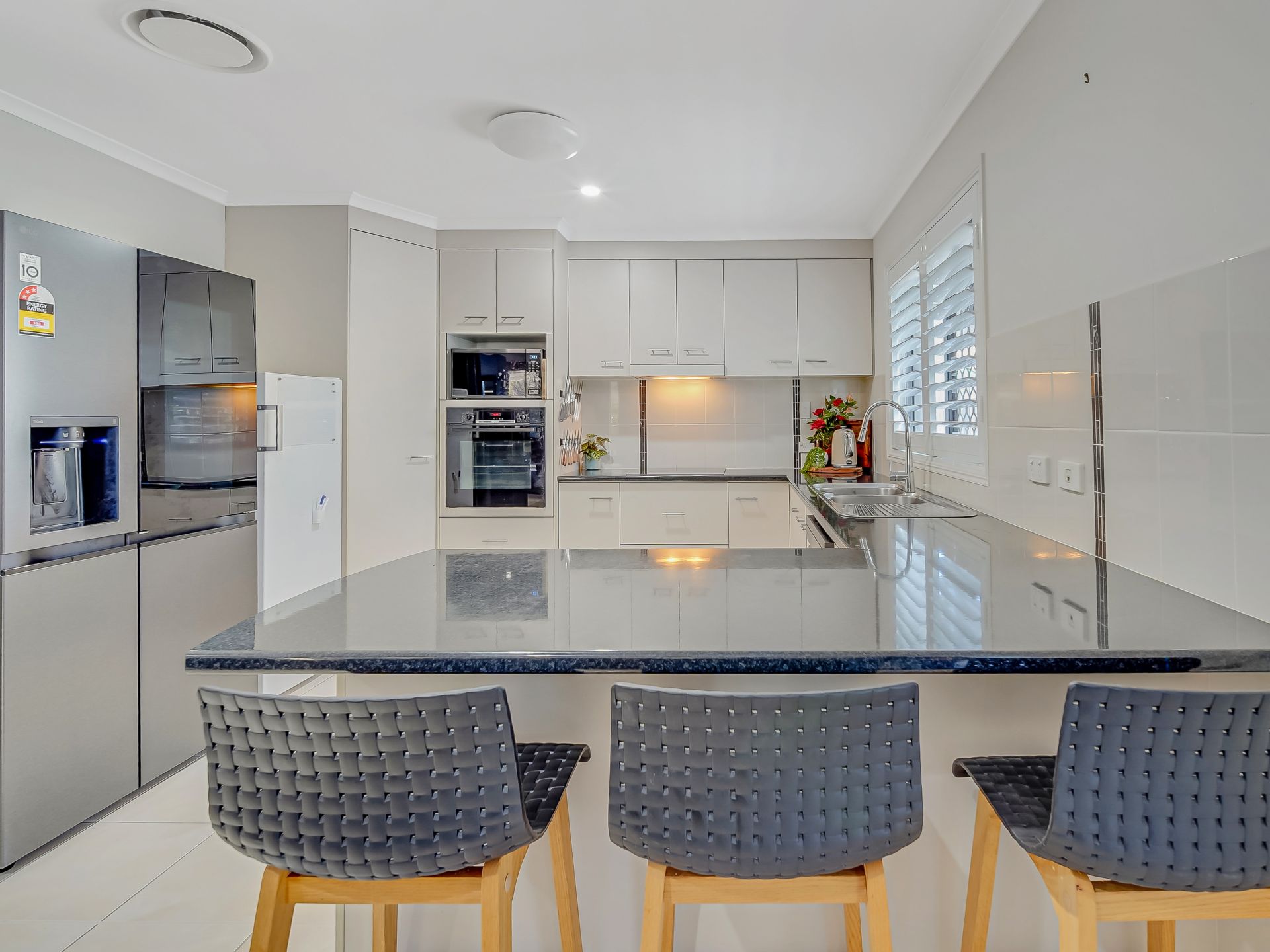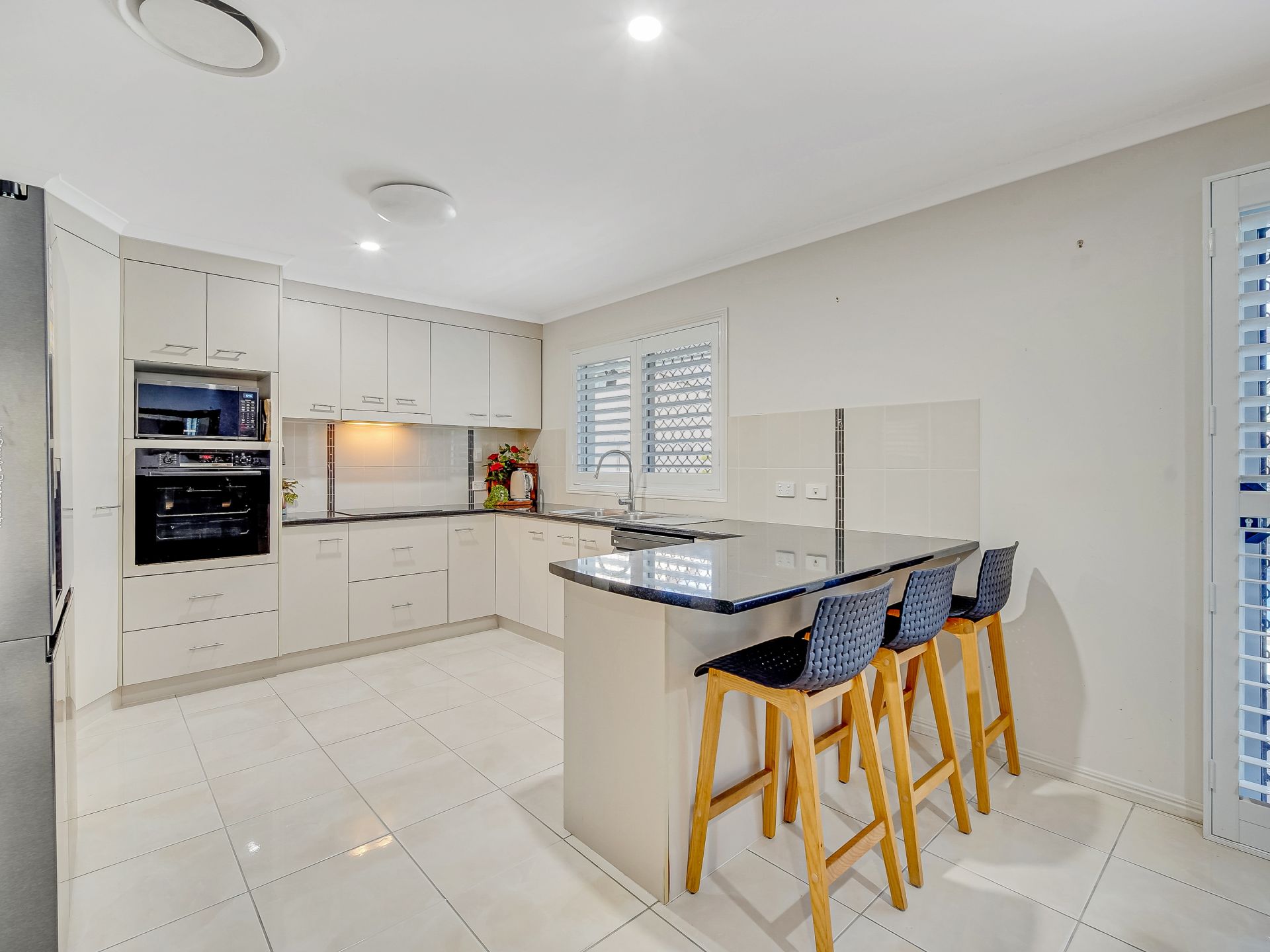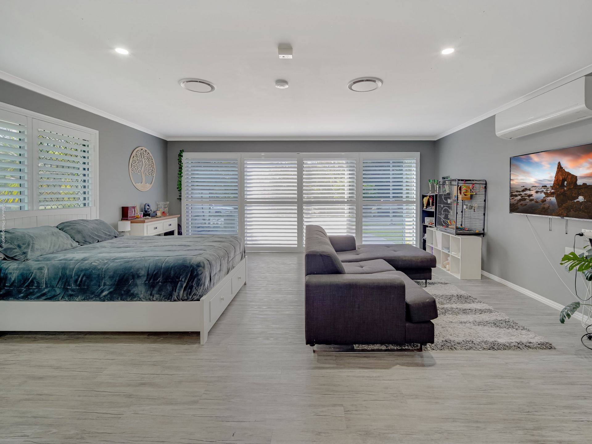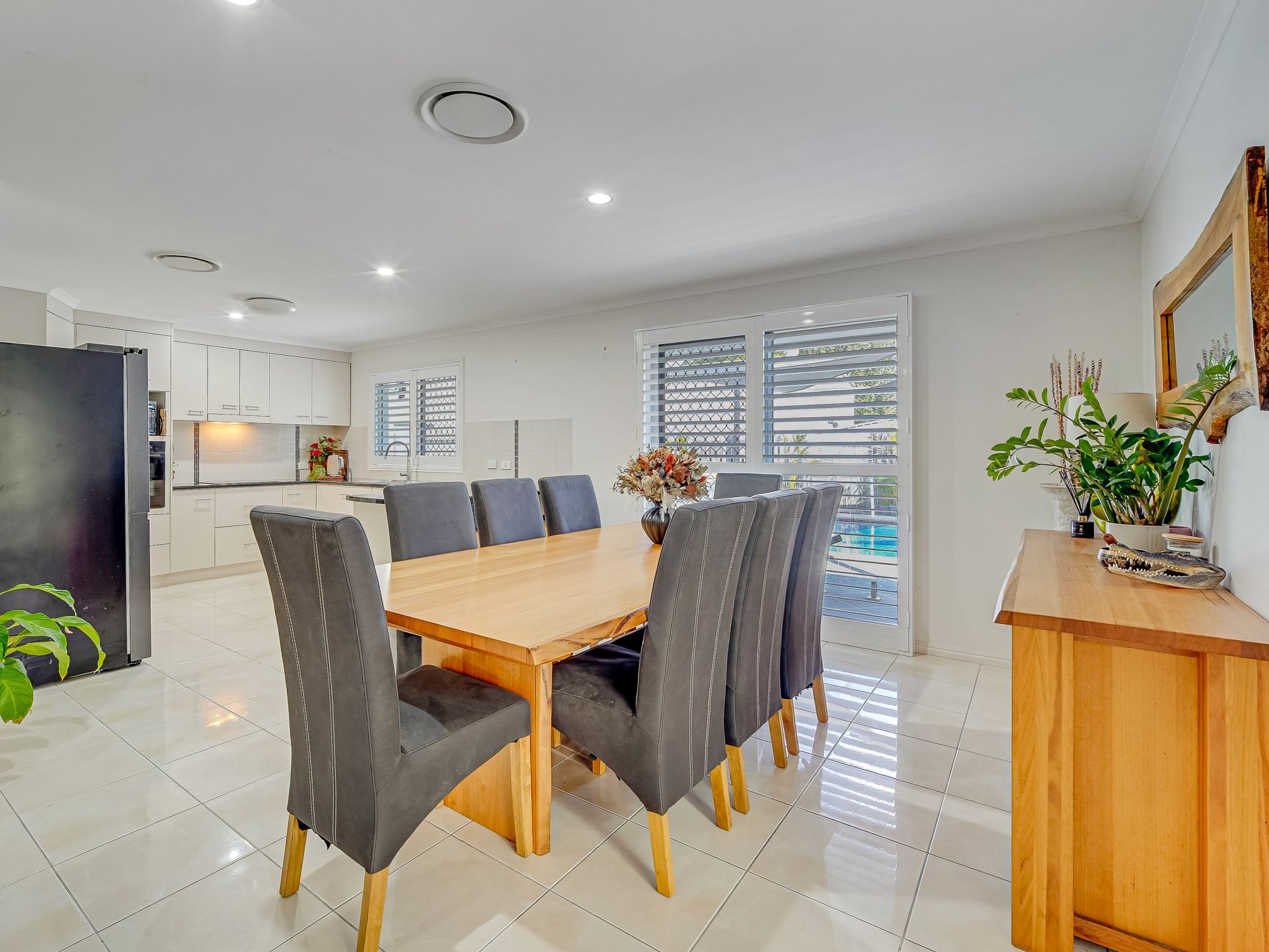 • A vast open-plan living and dining area with stylish plantation shutters and reverse-cycle ducted air conditioning