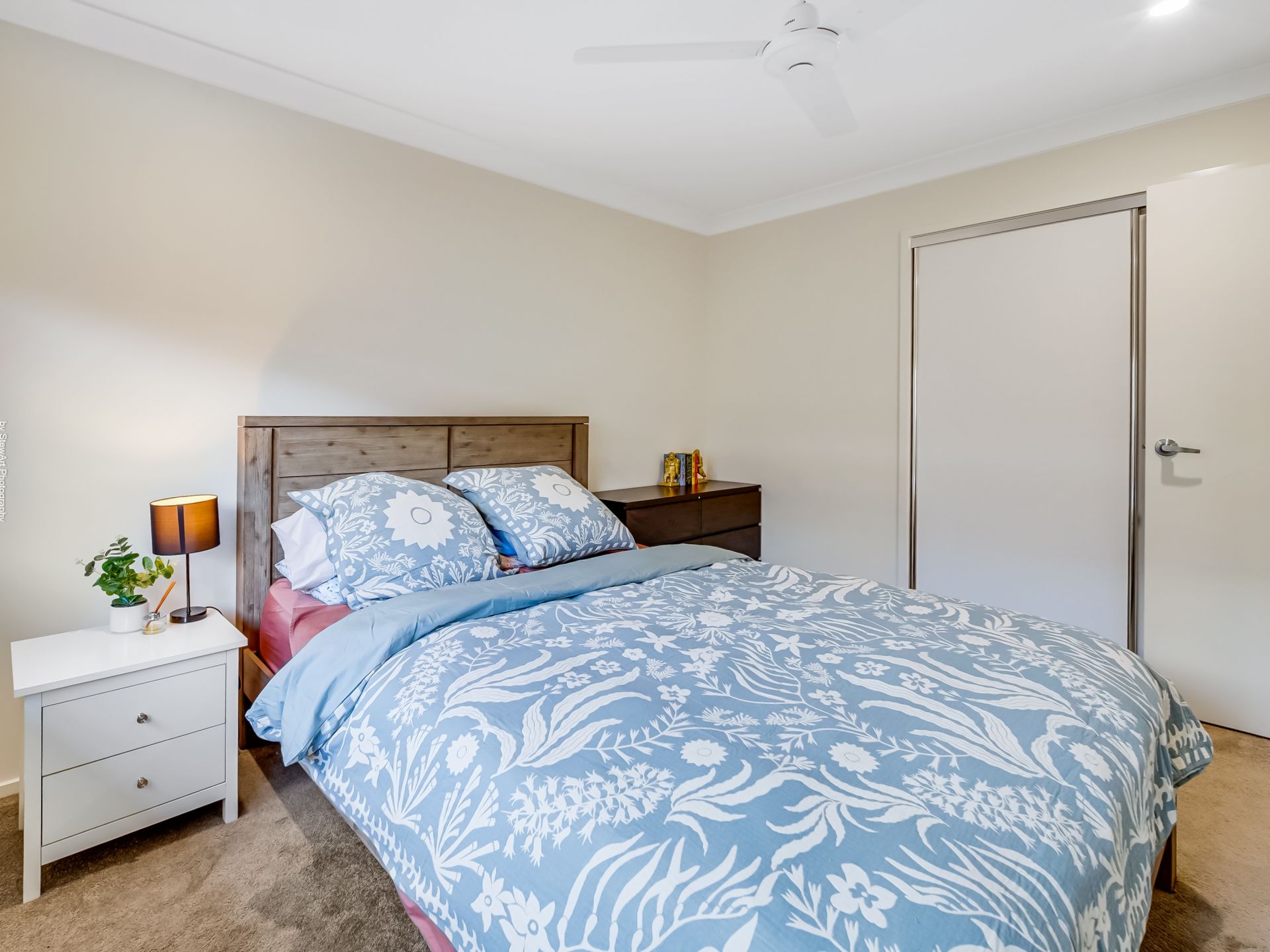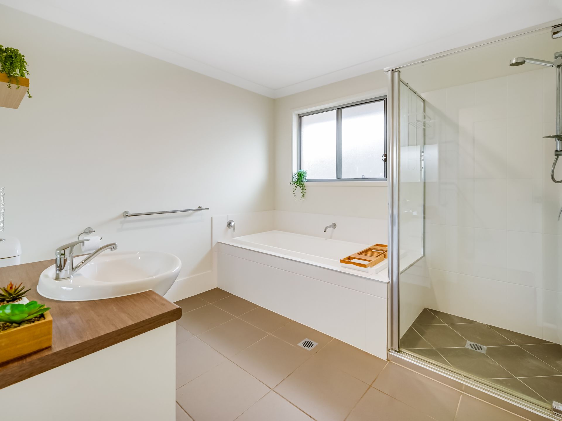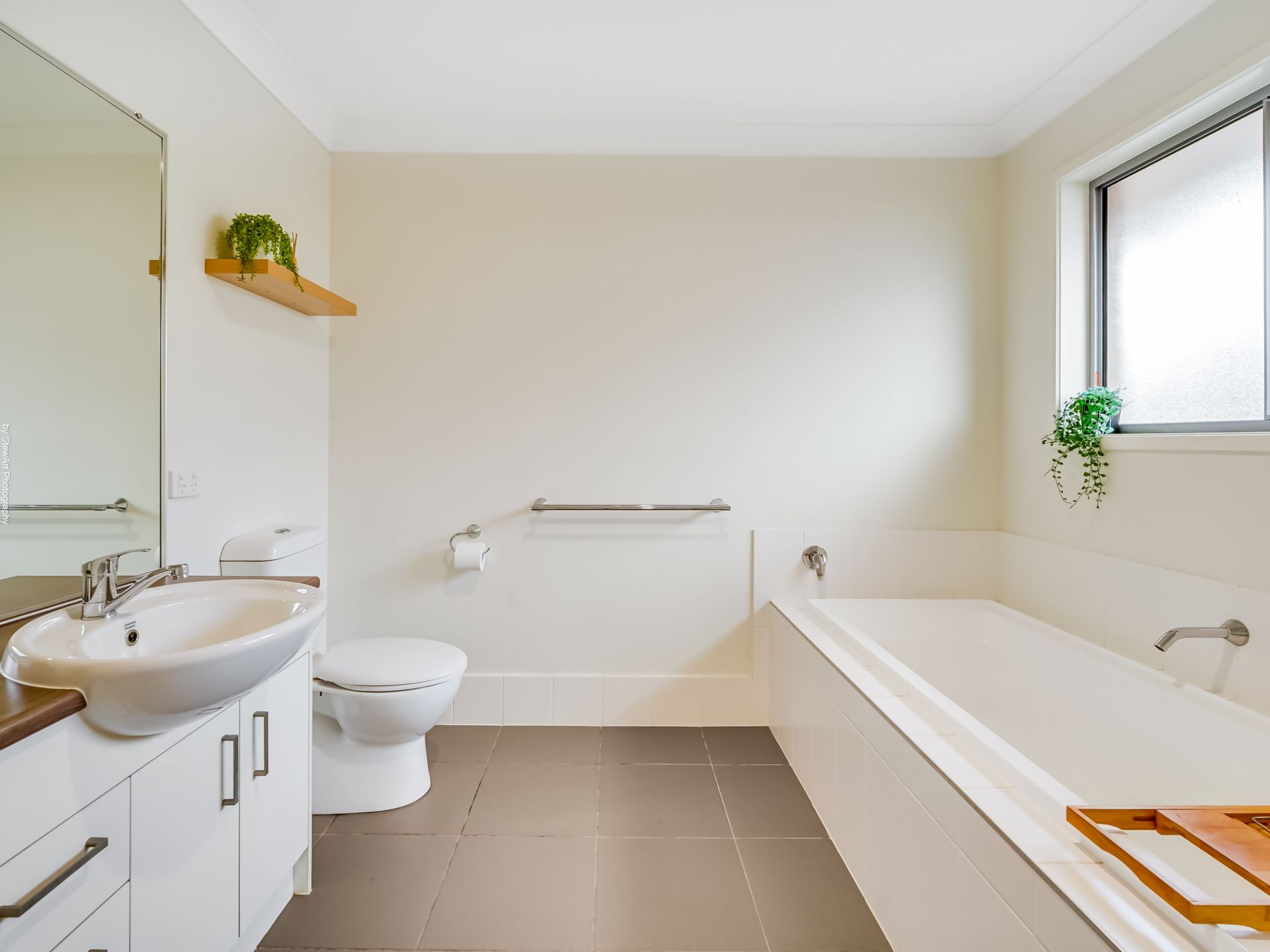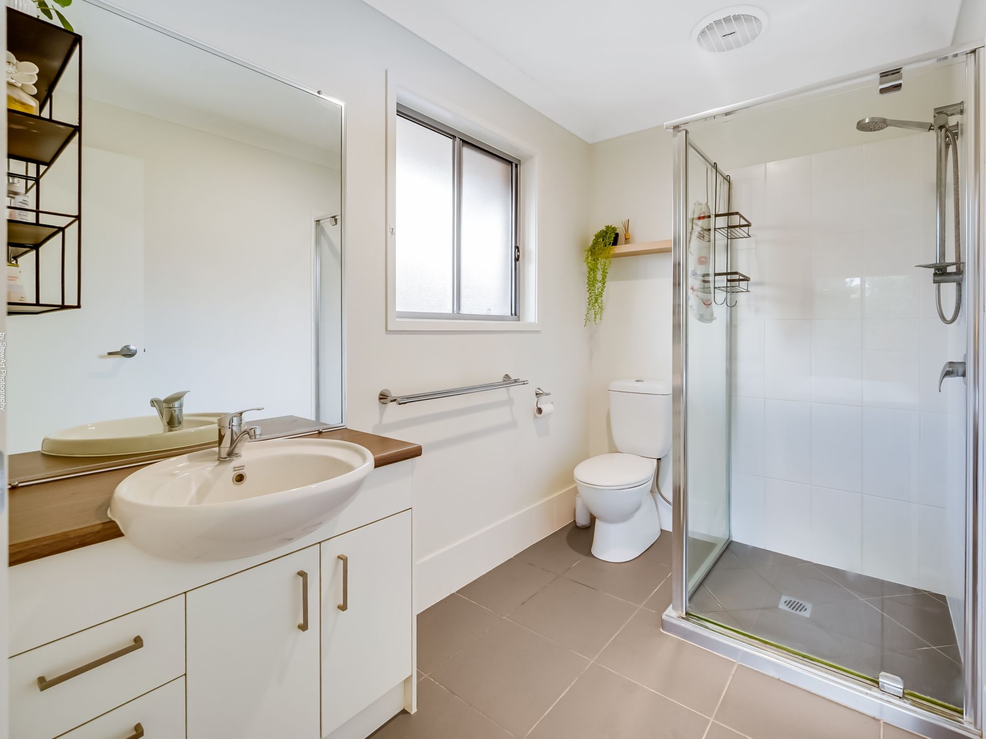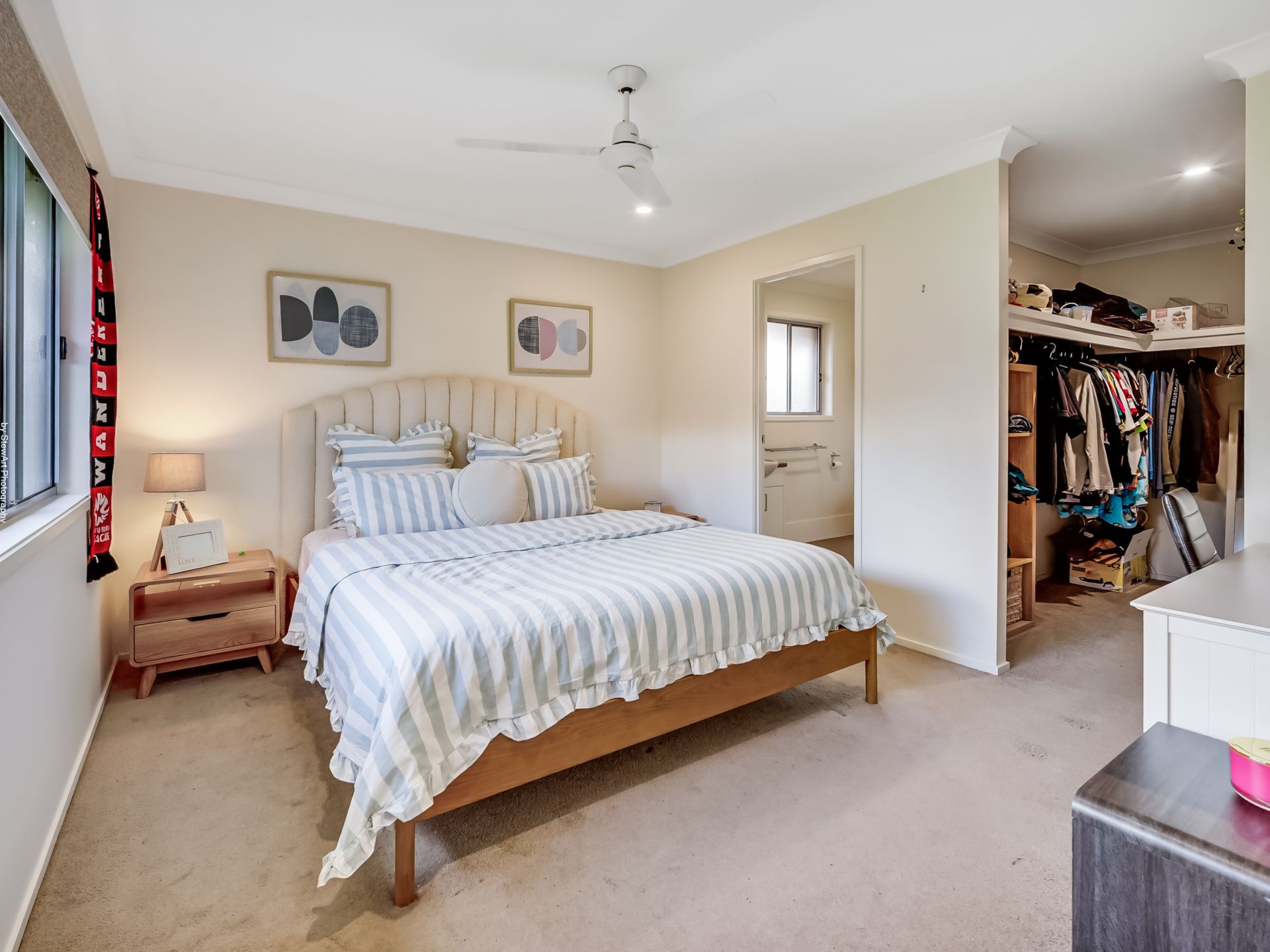 • The main bedroom includes a ceiling fan, a walk-in wardrobe, and an ensuite with a vanity, shower and toilet