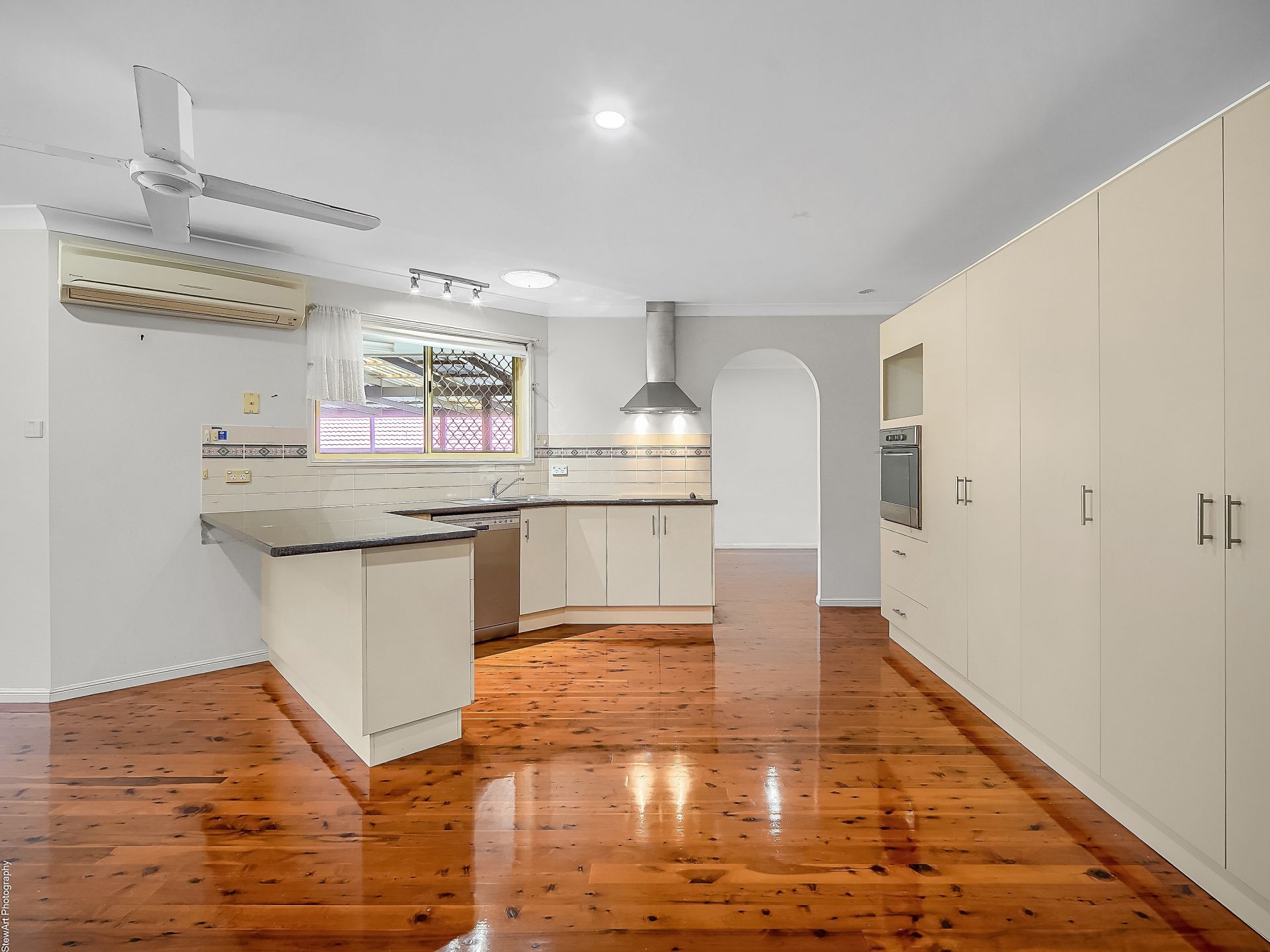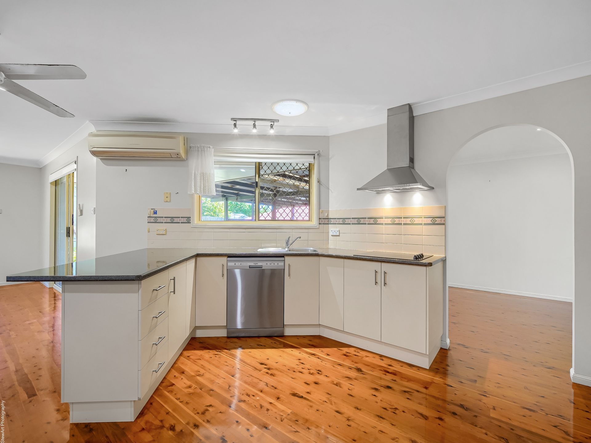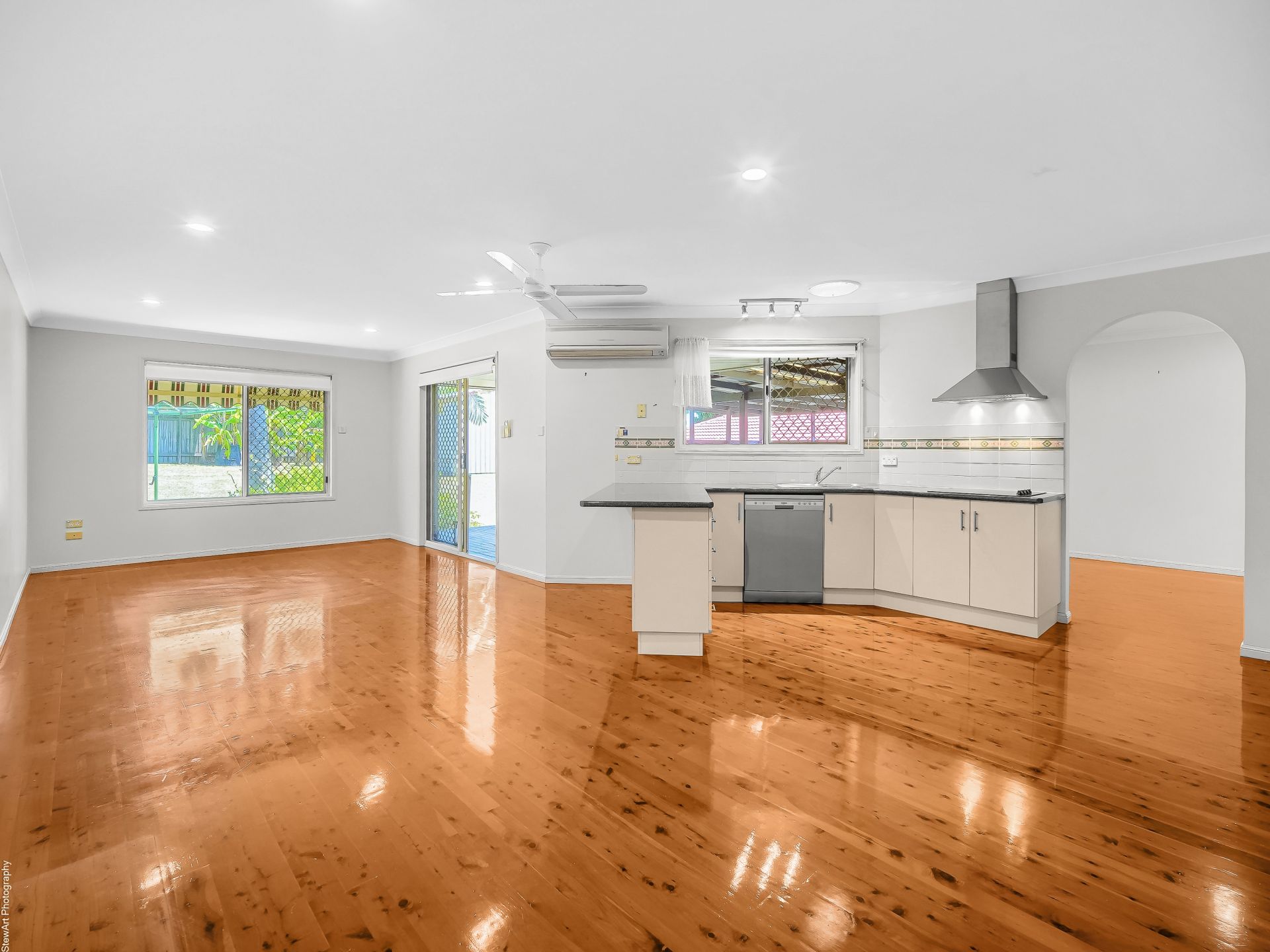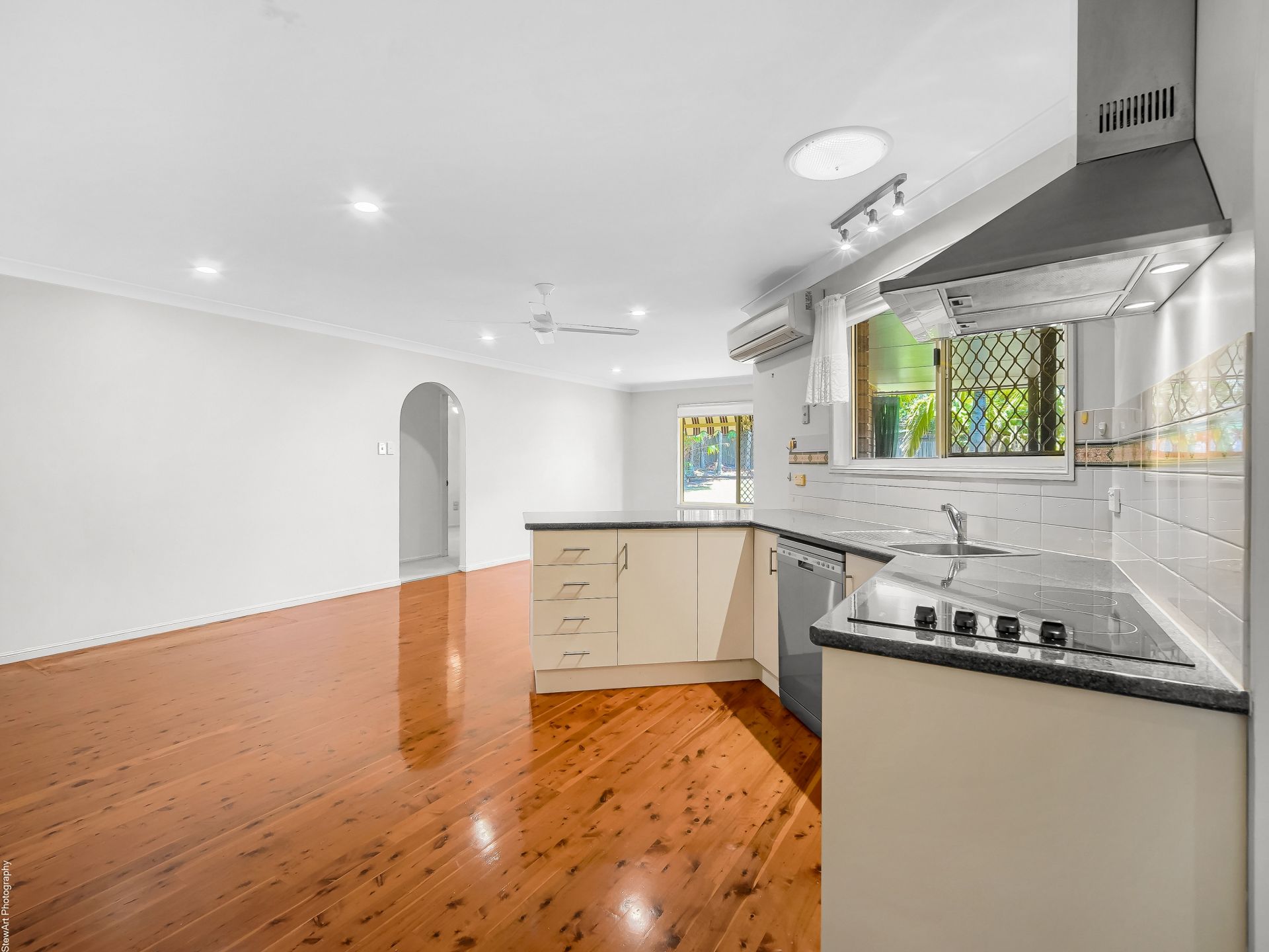 • An open-plan dining and living area directly off the kitchen with split system air-conditioning