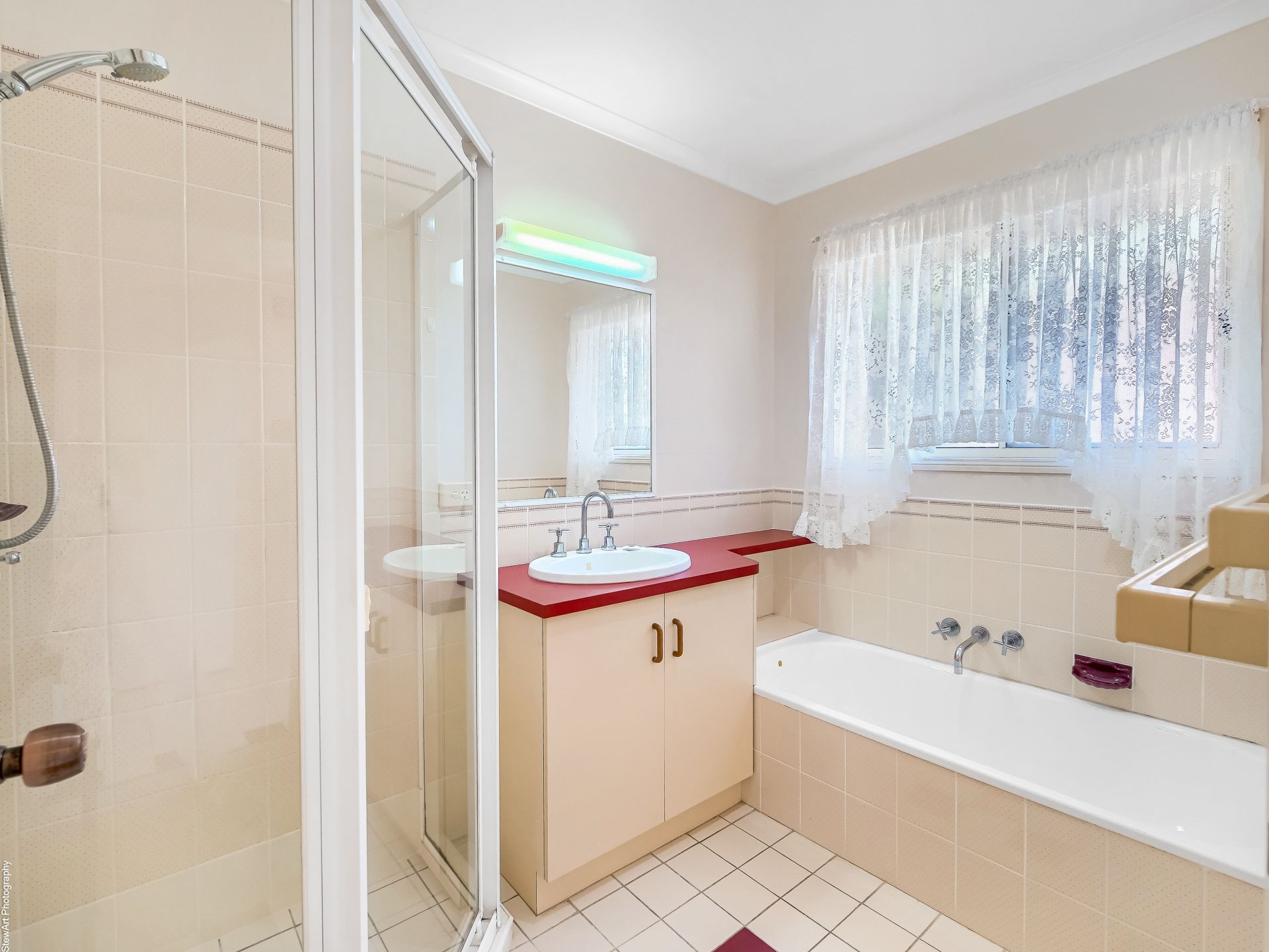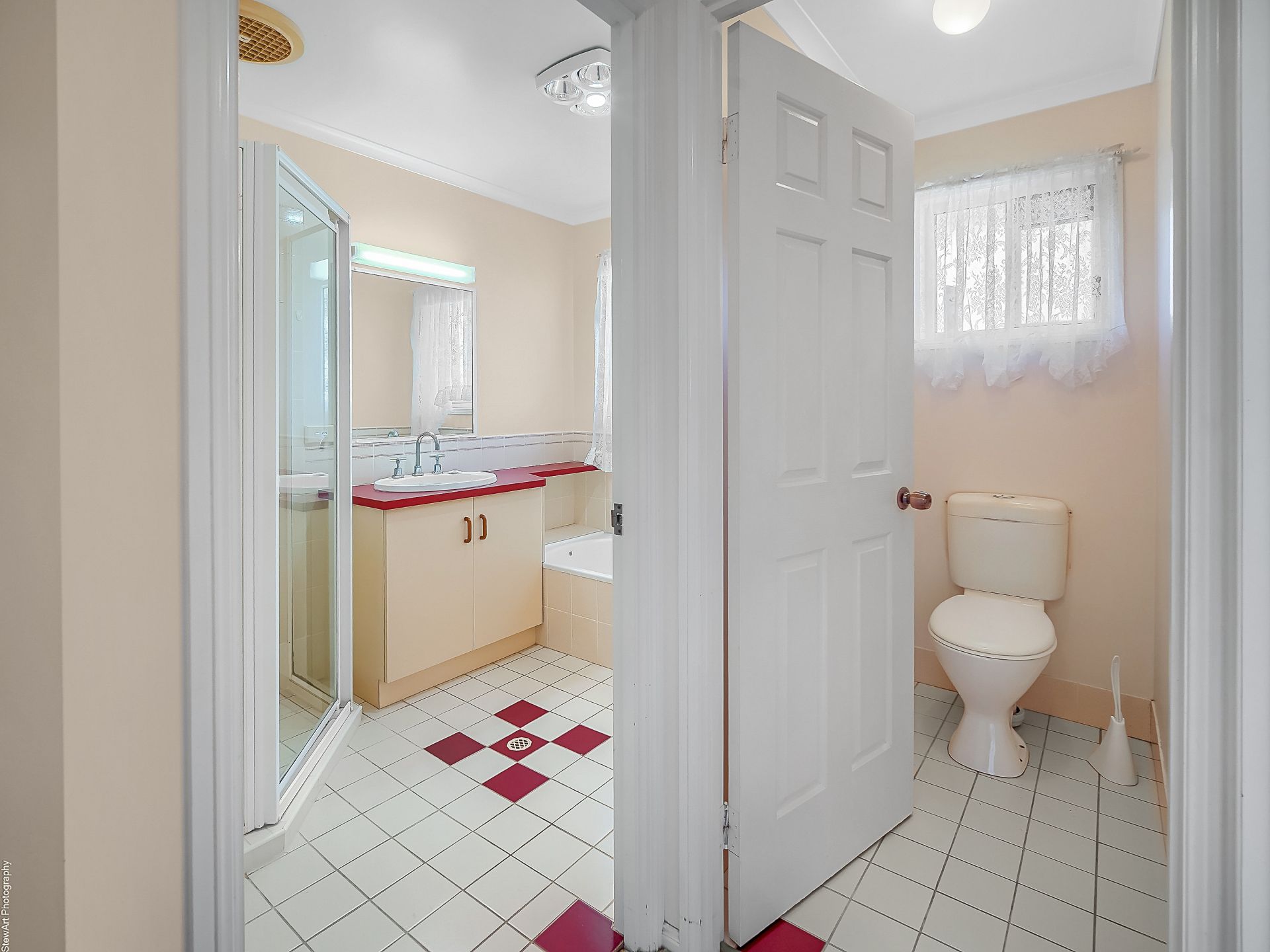 • The bathroom features a shower, vanity and bath, plus a separate toilet