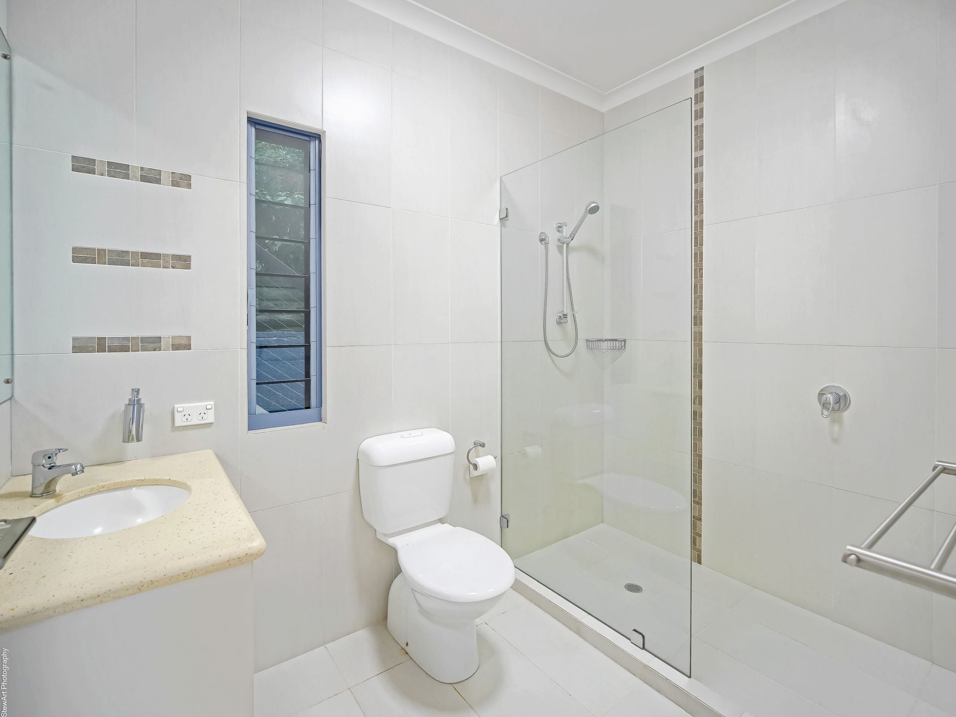 • Downstairs offers dual-living potential and includes high ceilings, a vast open-plan living area, a kitchenette, and a bathroom with floor-to-ceiling tiles, a shower, a vanity, and a toilet