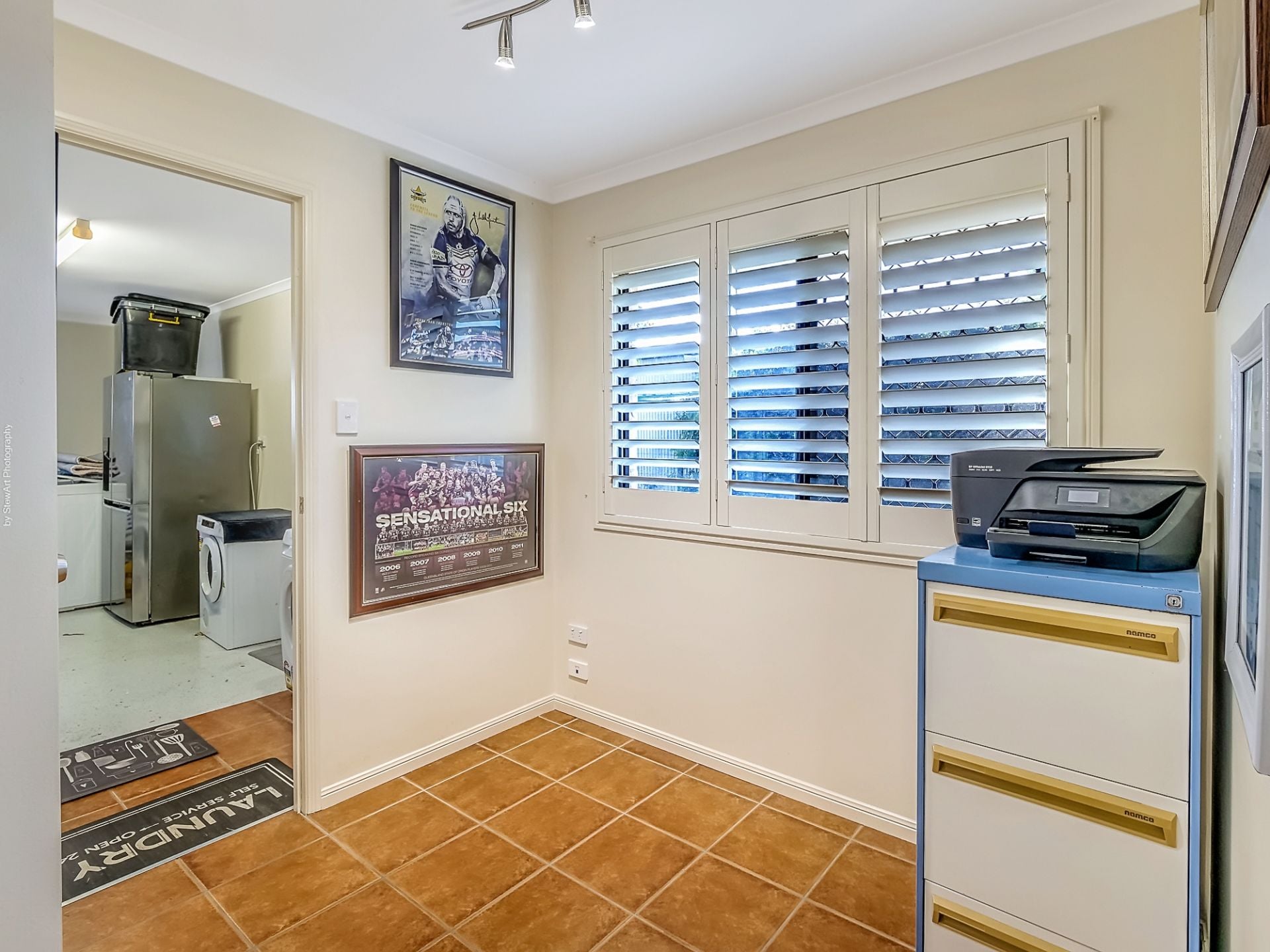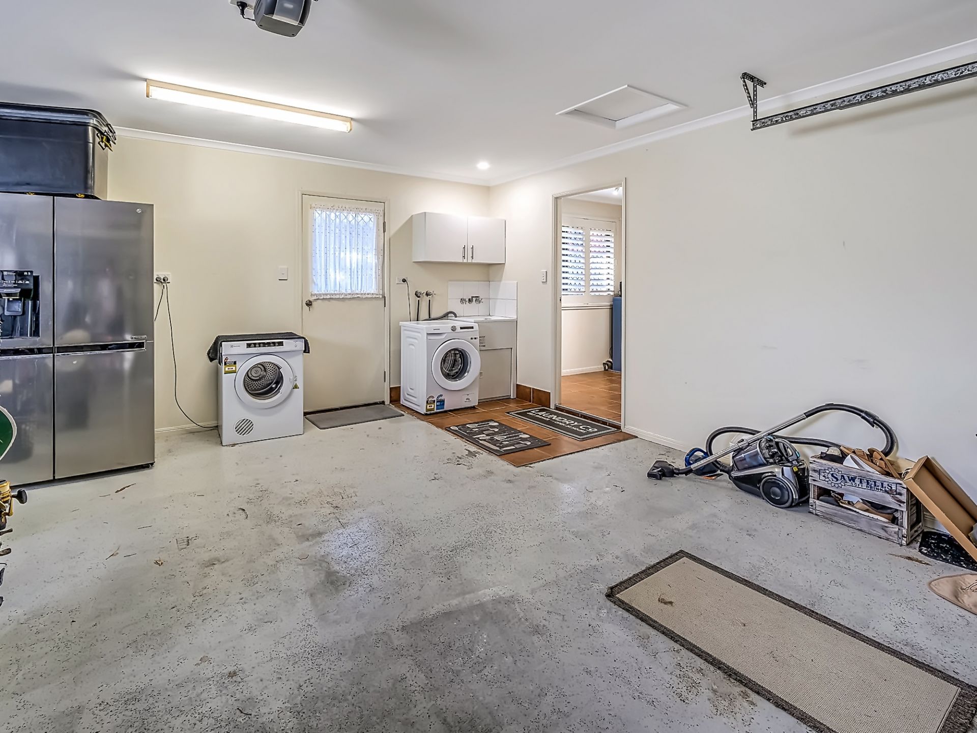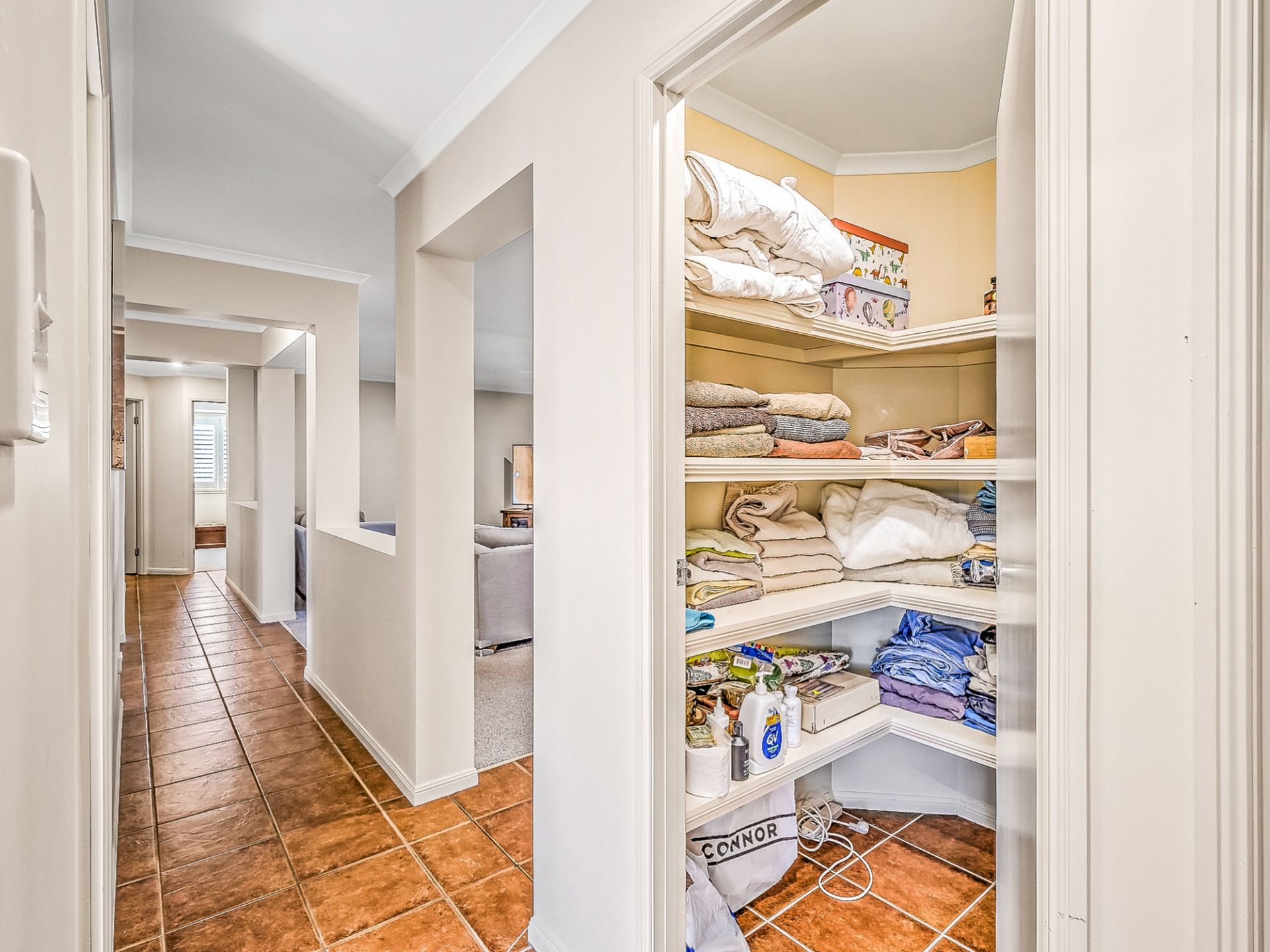 • The laundry is located at the rear of the garage, and there is a walk-in linen cupboard