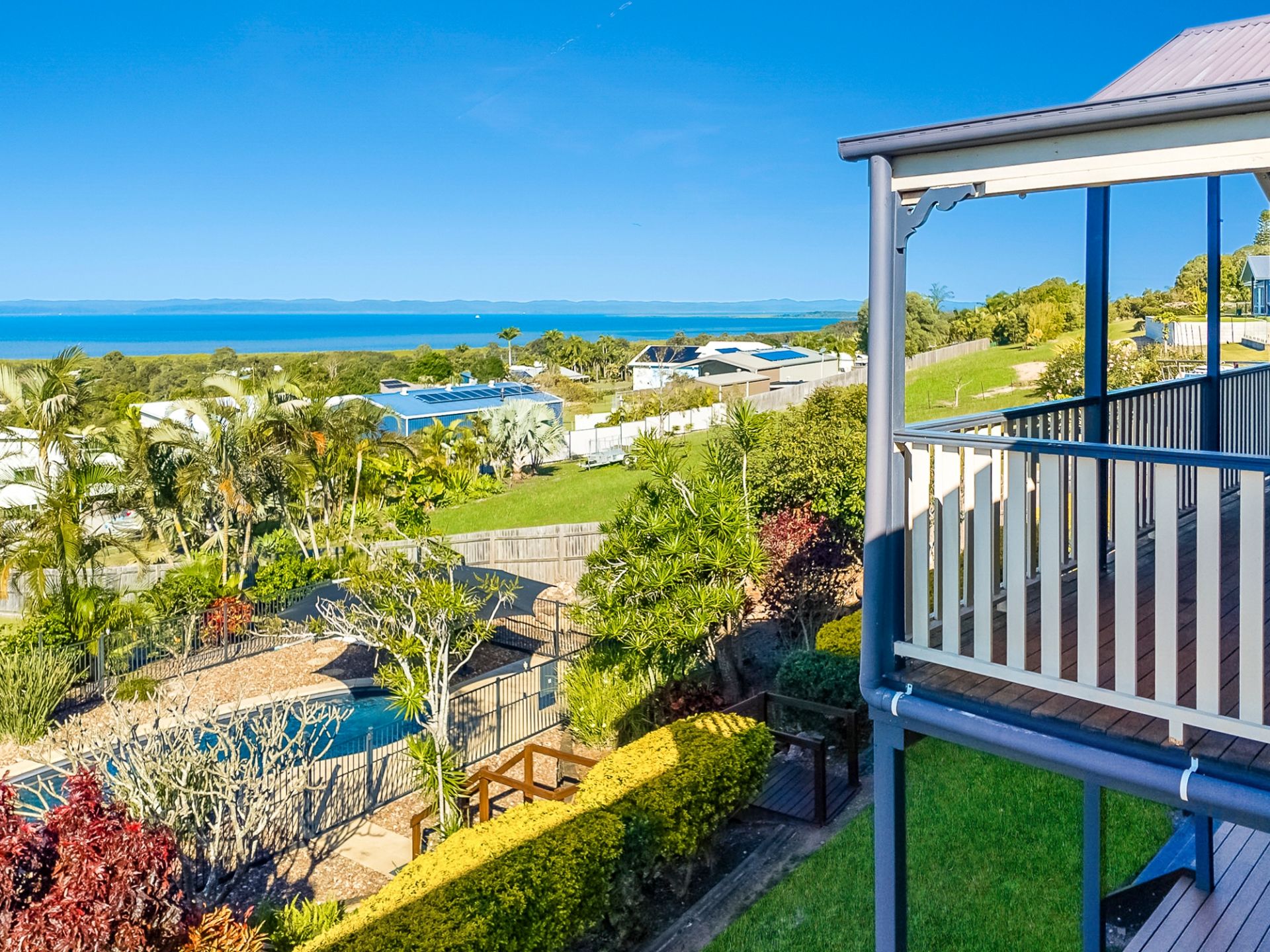 This wonderful character-filled home is perfectly positioned on a large and elevated 3397m2 corner allotment offering the best panoramic sea views I have seen across Hervey Bay. You can see from Big Woody Island, across the Great Sandy Straits to K'gari – Fraser Island, back to Kingfisher Bay Resort and River Heads to the South!