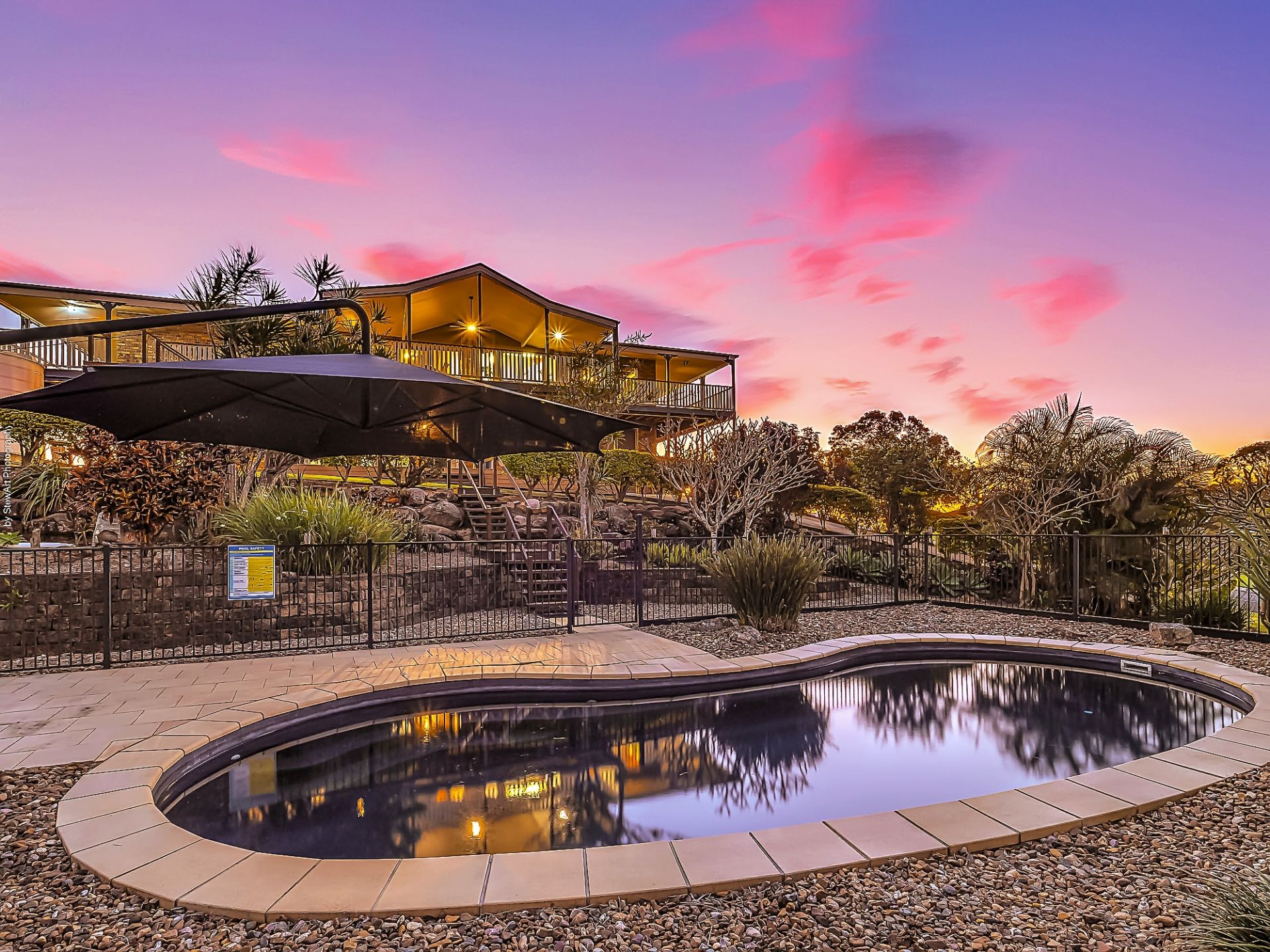 • A fabulous alfresco outdoor entertaining deck wraps around all four sides of the home to capture the panoramic views
