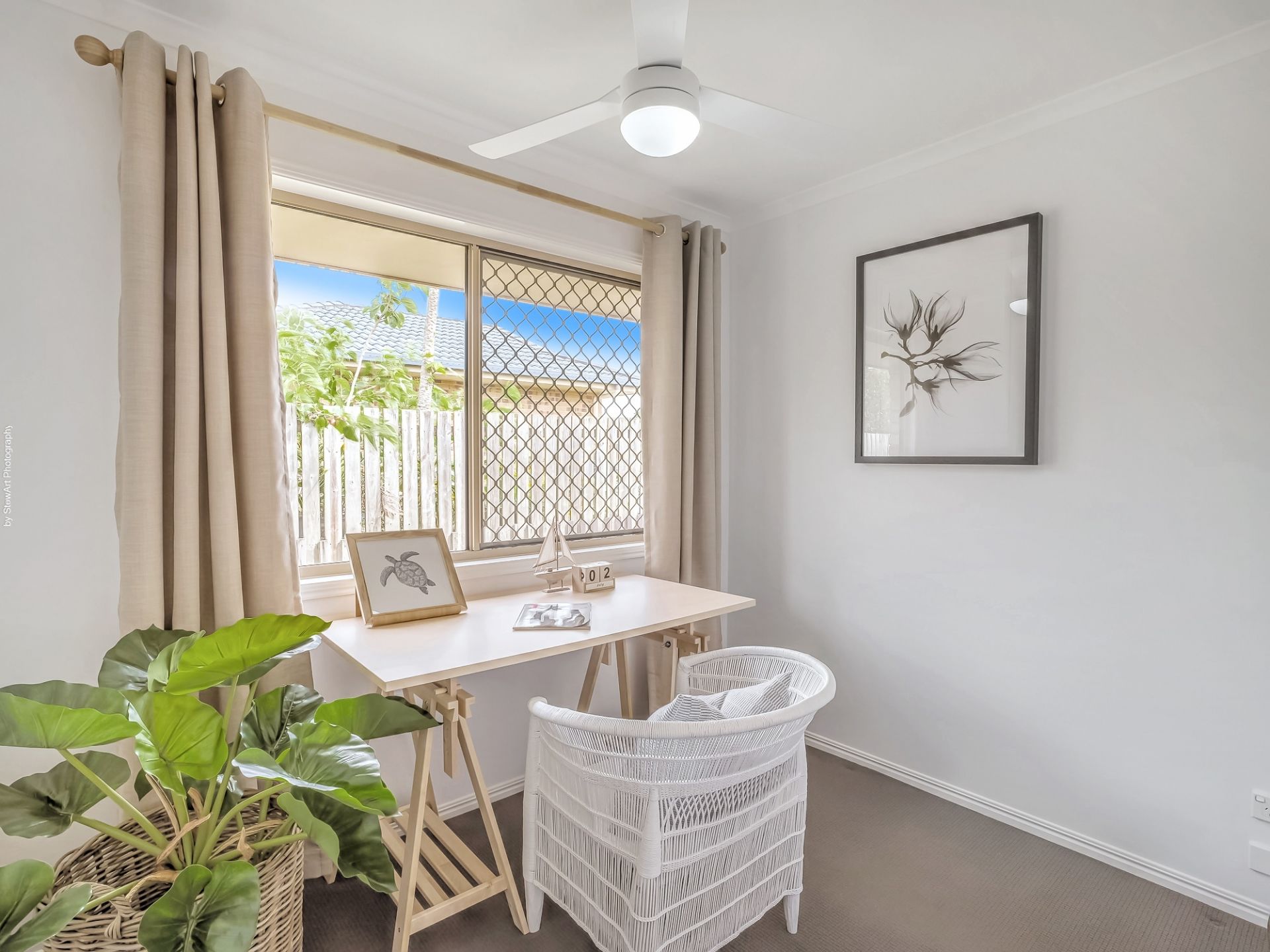 • A home office with a ceiling fan which could make up a fourth bedroom when required