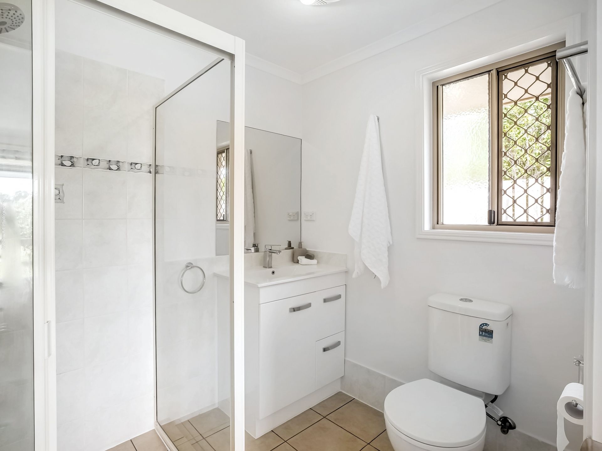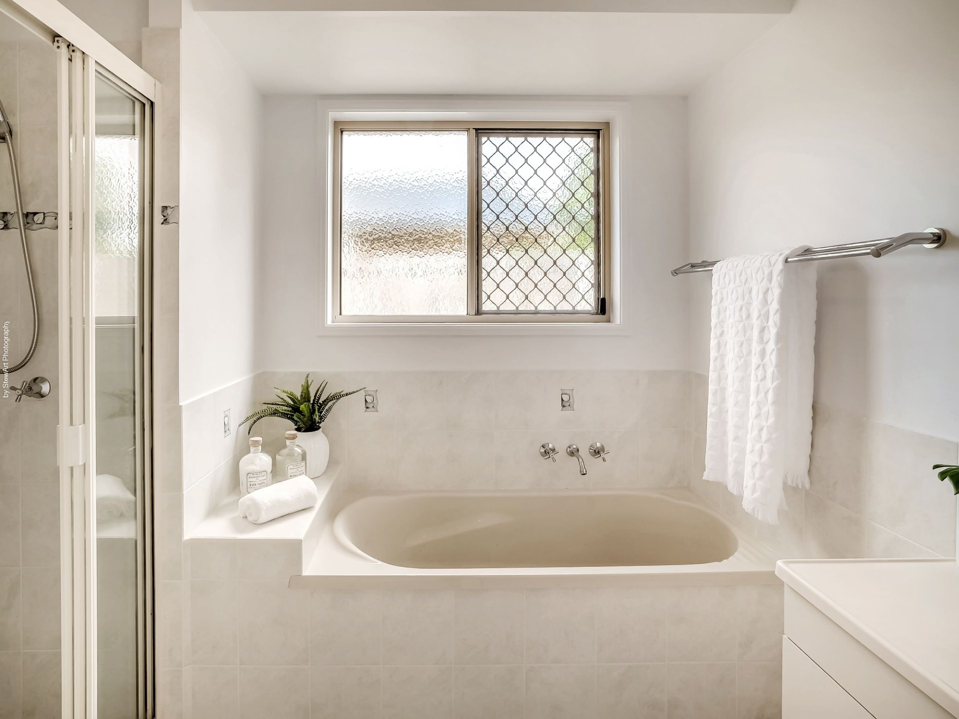 • The main bedroom includes a ceiling fan, reverse cycle split system air-conditioning, a built-in wardrobe, and a refurbished ensuite with a shower and a new vanity and toilet