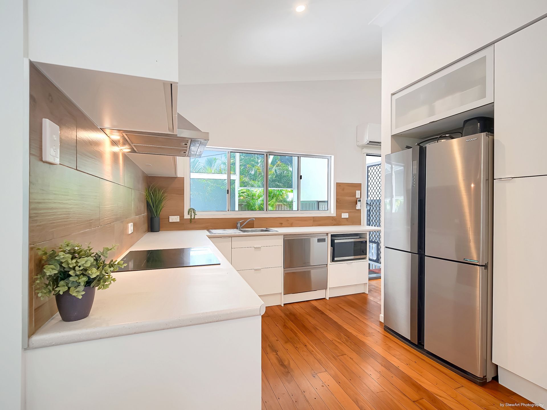 • Quality appliances include an induction cooktop with a rangehood, an oven, and two dishwasher drawers