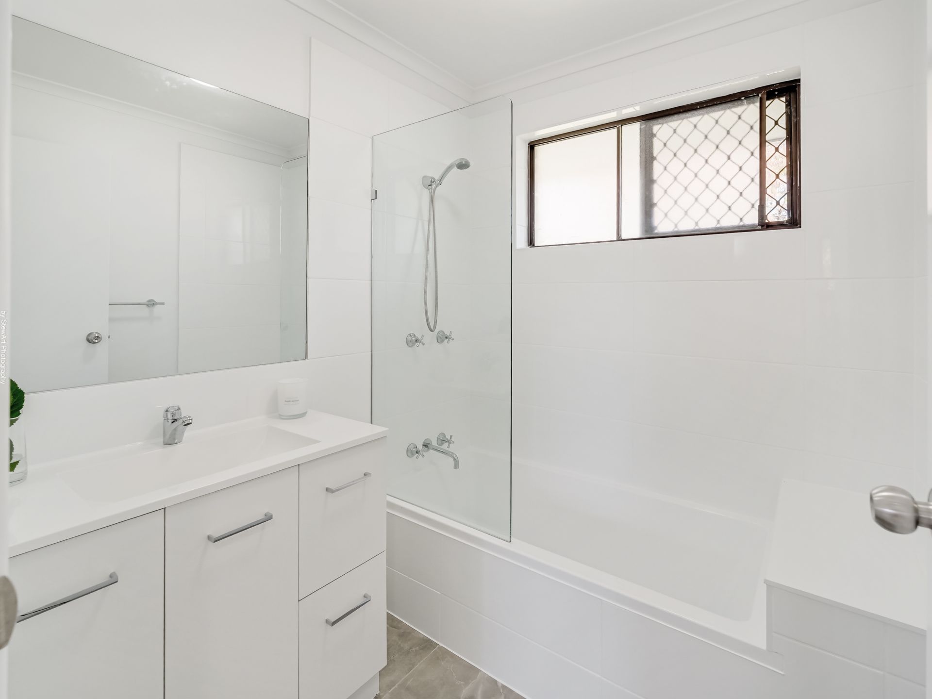 • The bathroom features a shower over the bath and a new vanity, plus a separate new toilet