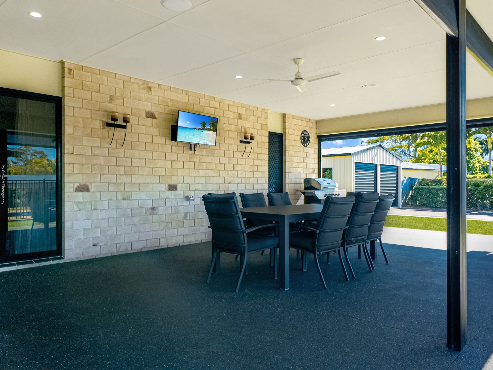 • A fabulous North-facing alfresco outdoor entertaining area with roller shade blinds and built-in speakers, all under the main roof