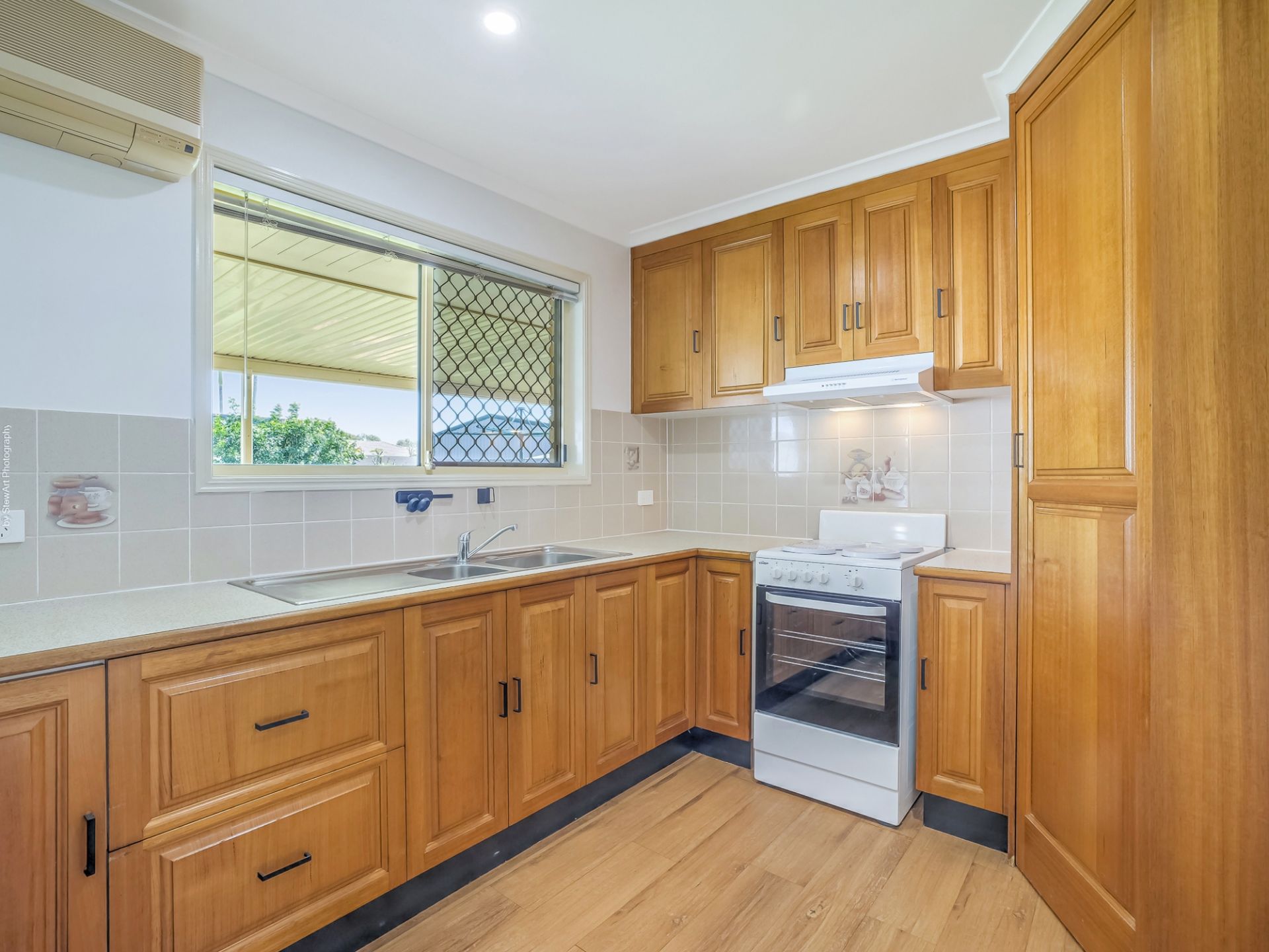 • Appliances include an electric stove and rangehood