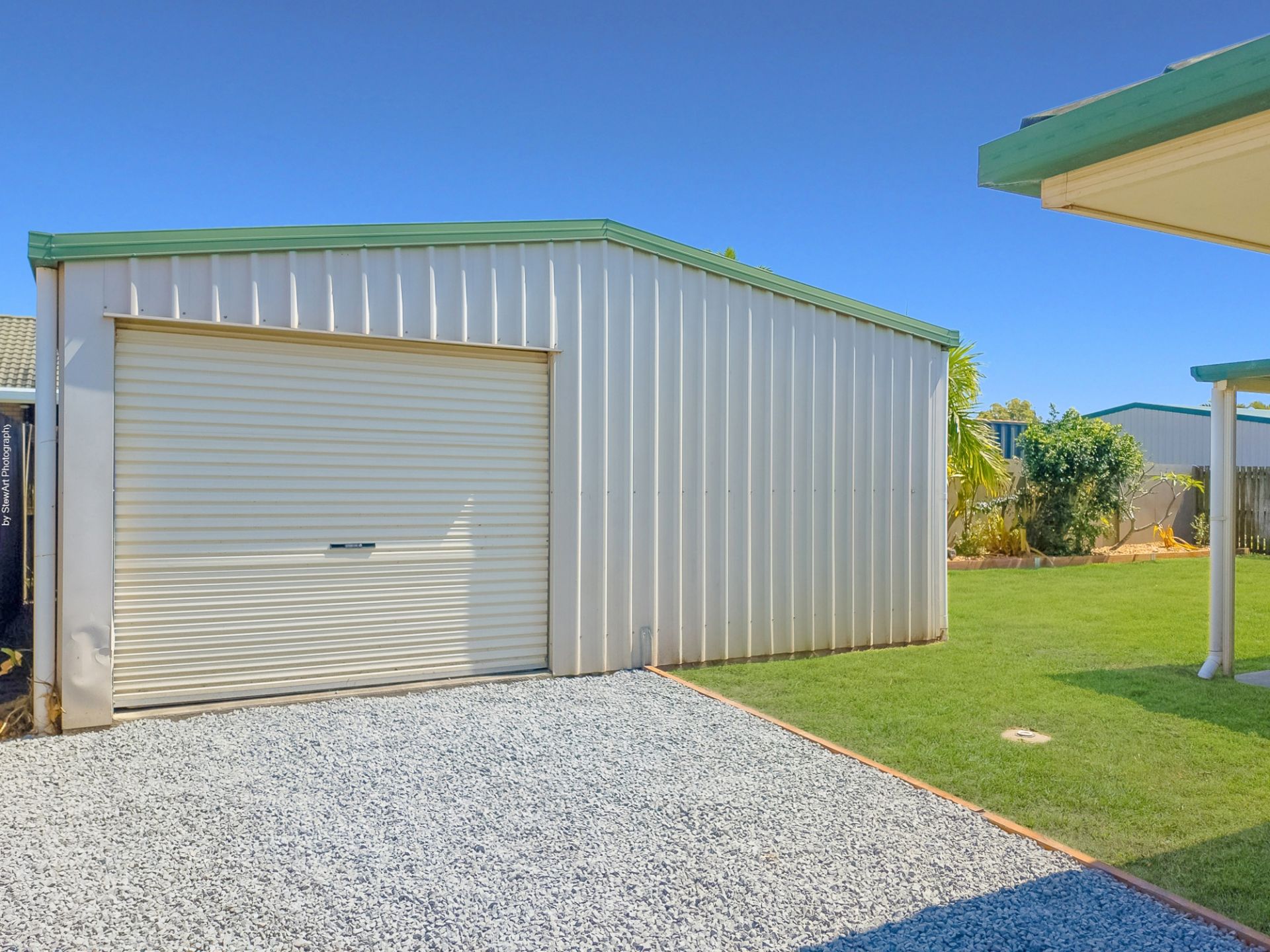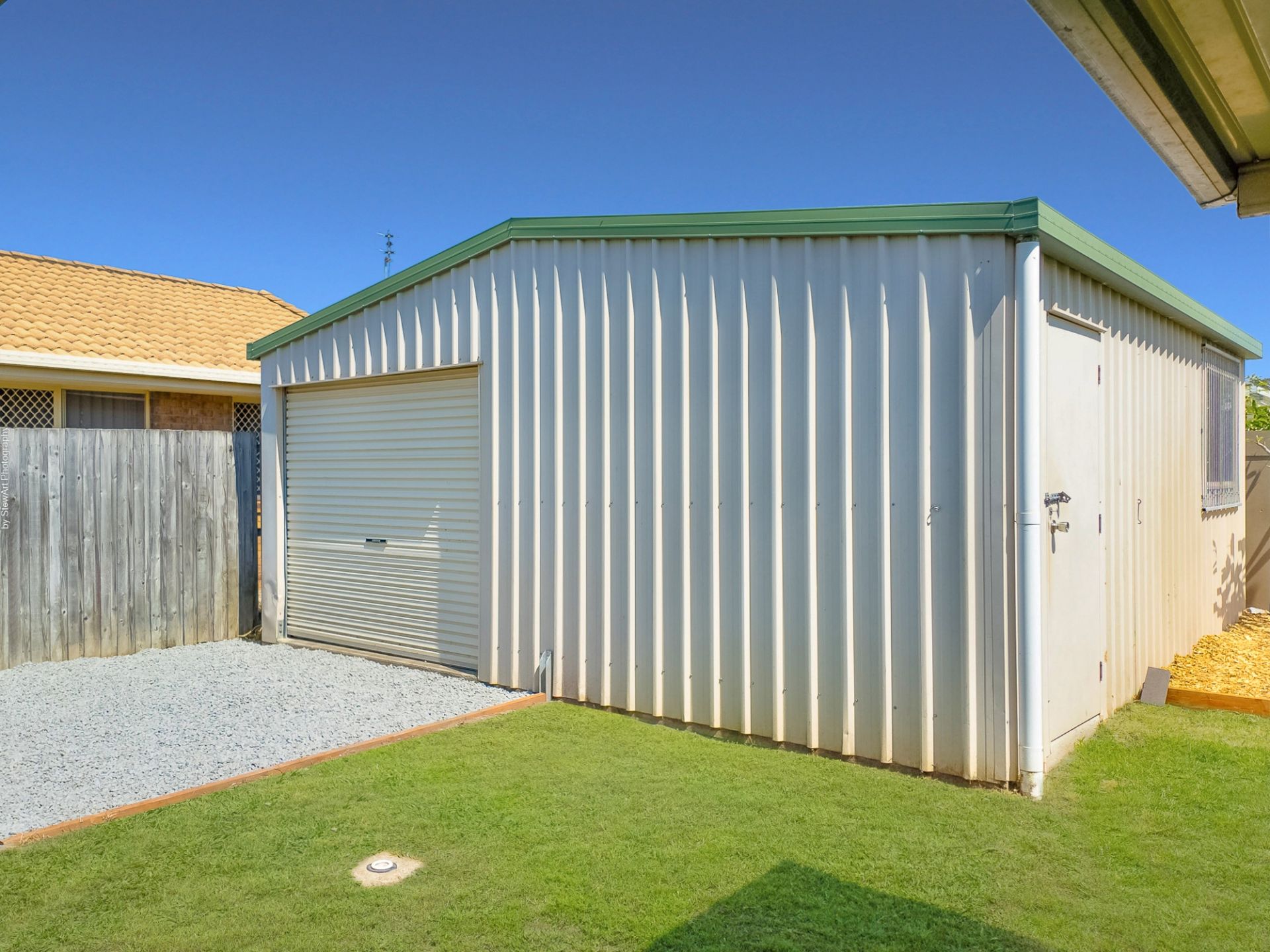 • Clear side access to the approx. 6m x 6m single bay shed with power connected