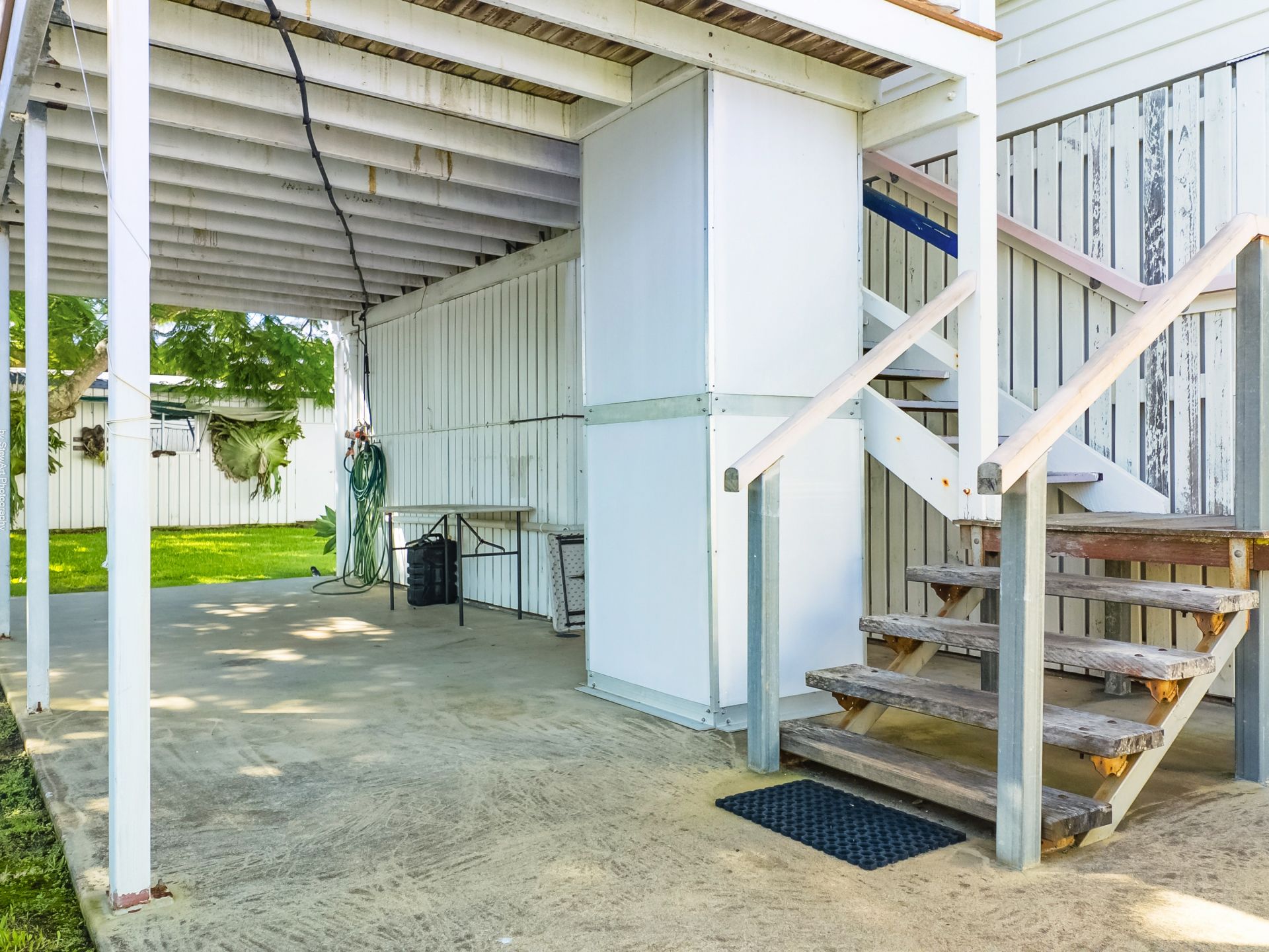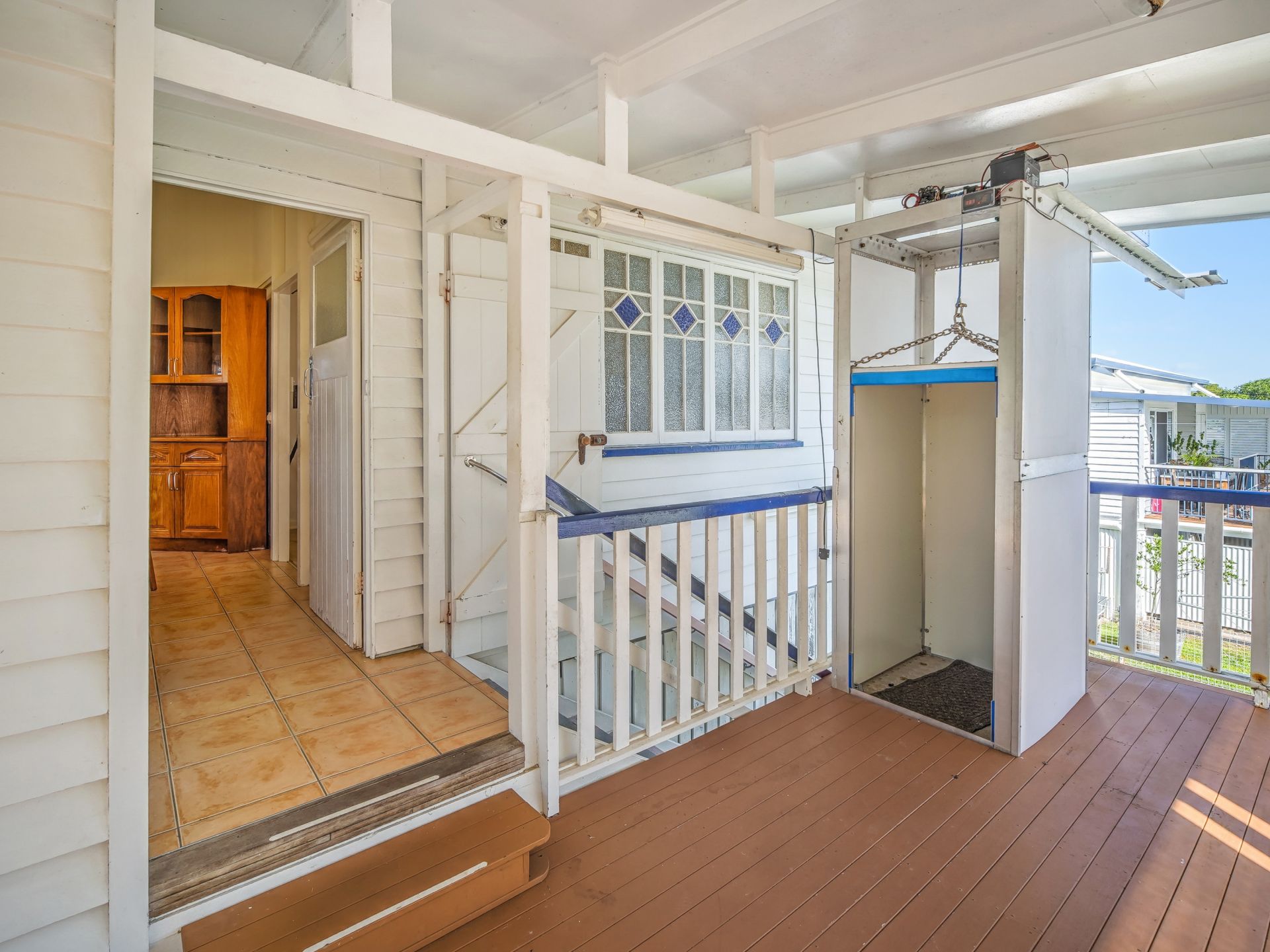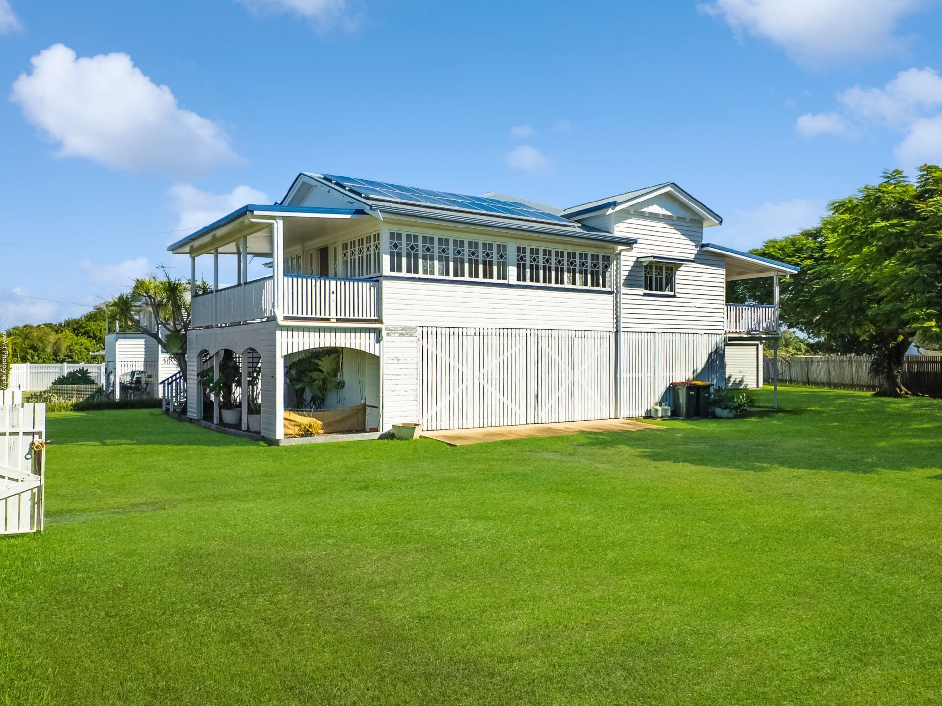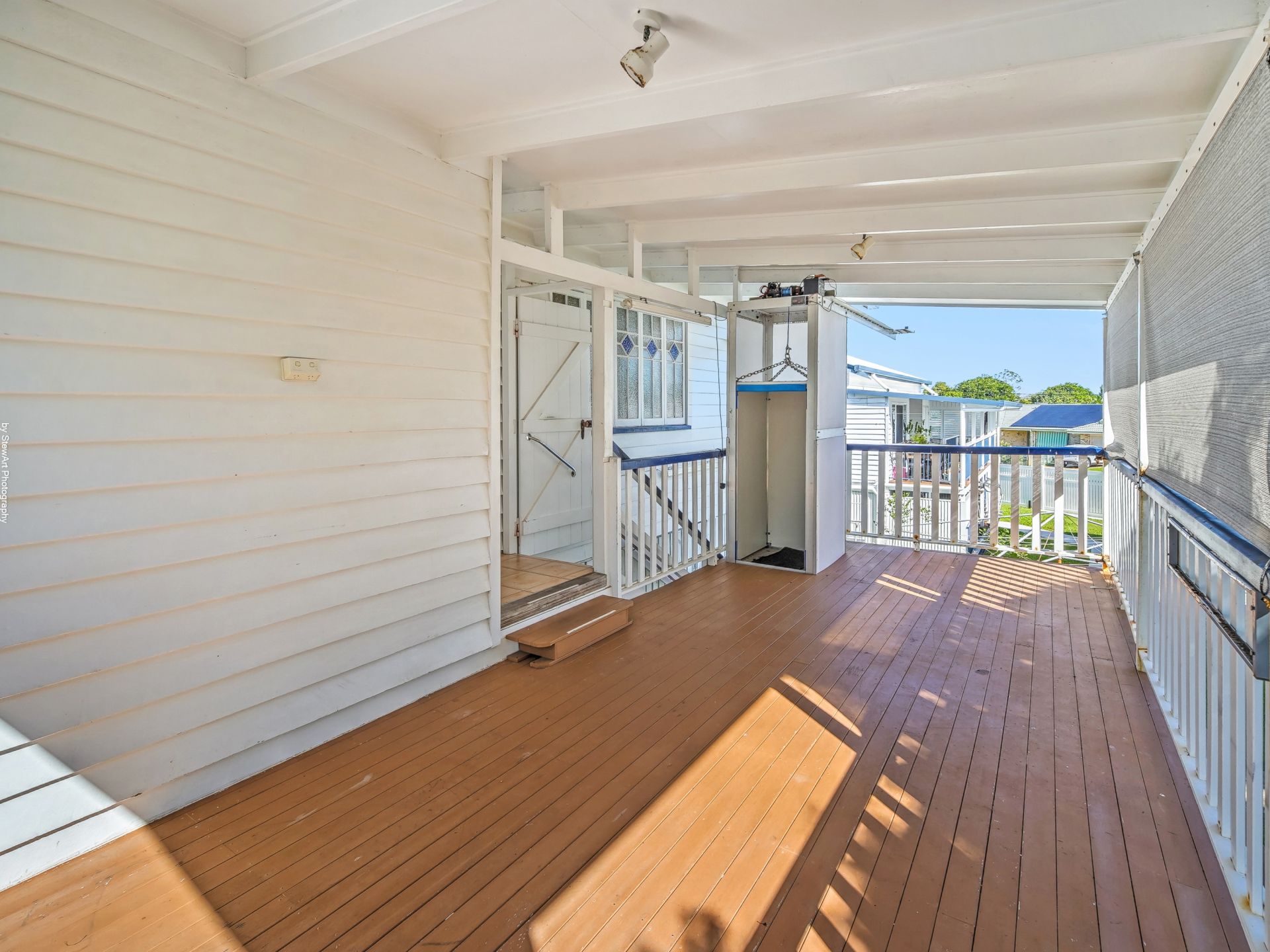 This lovely home has been lifted and restumped, offering high entry clearance underneath the home, allowing the potential for it to be fully enclosed for more living space if required. Quality craftsmanship is evident upstairs again, with high ceilings, VJ walls, and decorative casement windows. Yes, there is beautiful hardwood flooring underneath that carpet.
