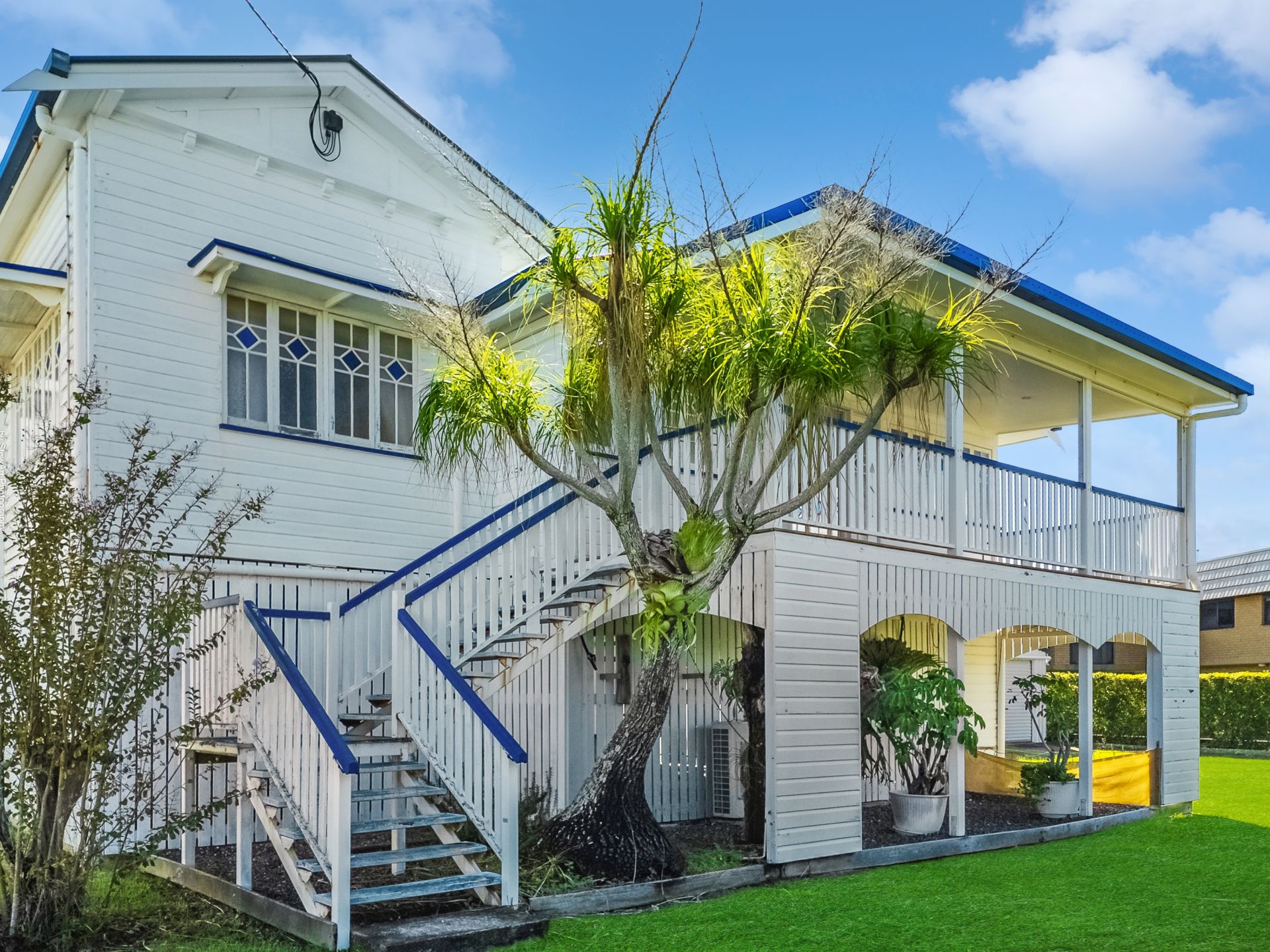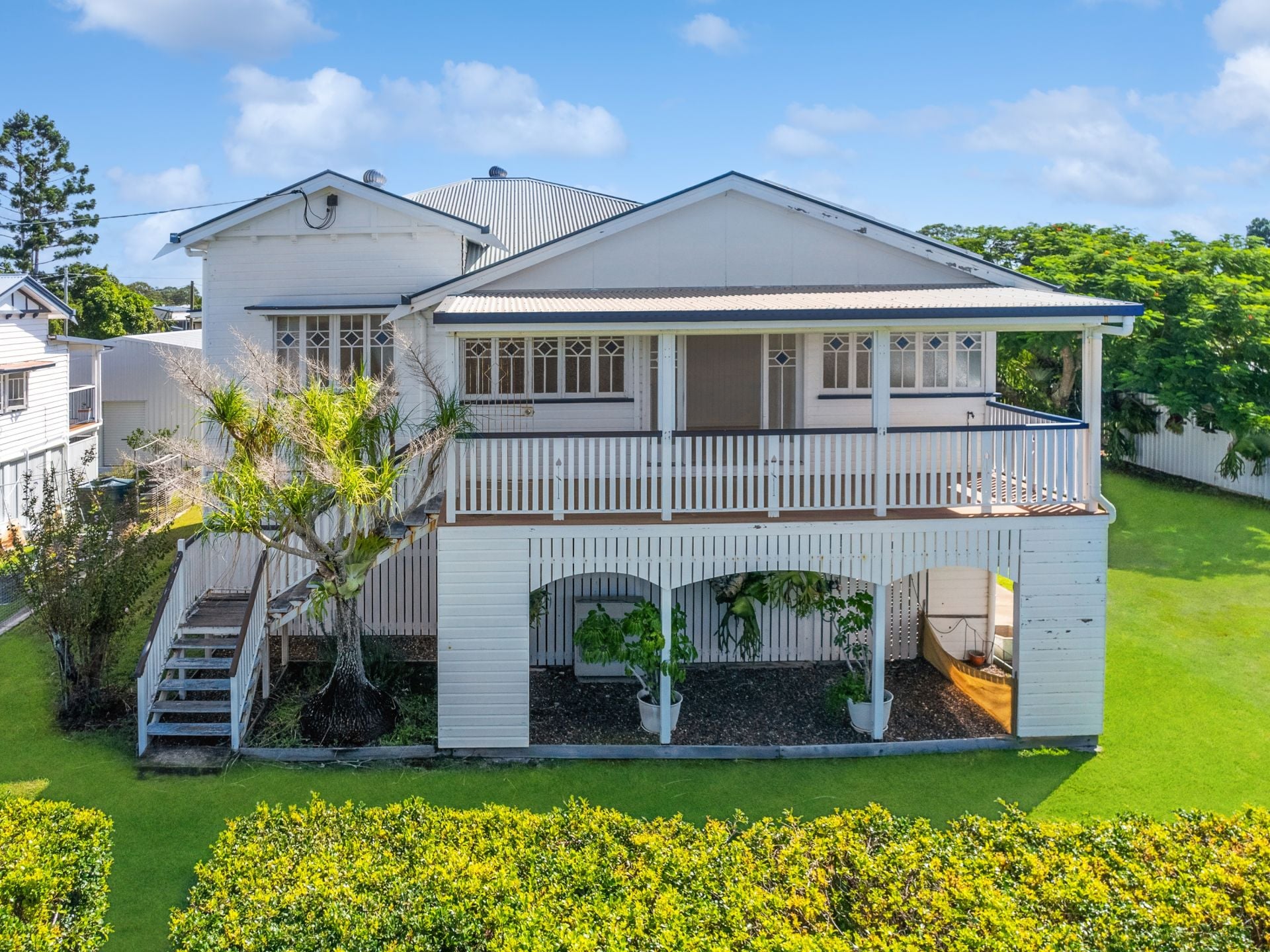 • Craftsman built original high-set charming Queenslander with hardwood flooring, VJ walls and beautiful decorative casement windows