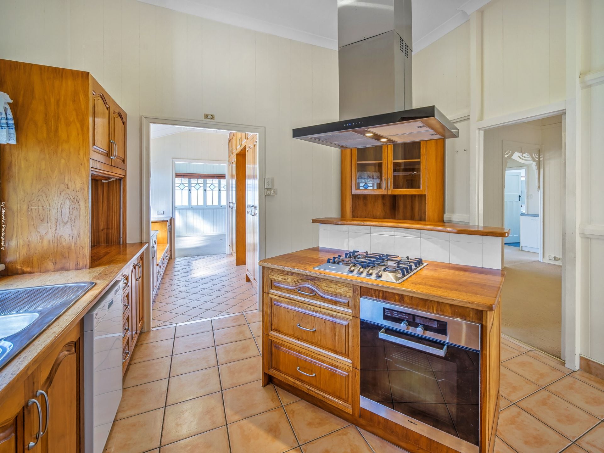 • Appliances include a 4-burner gas cooktop with rangehood, oven and a dishwasher