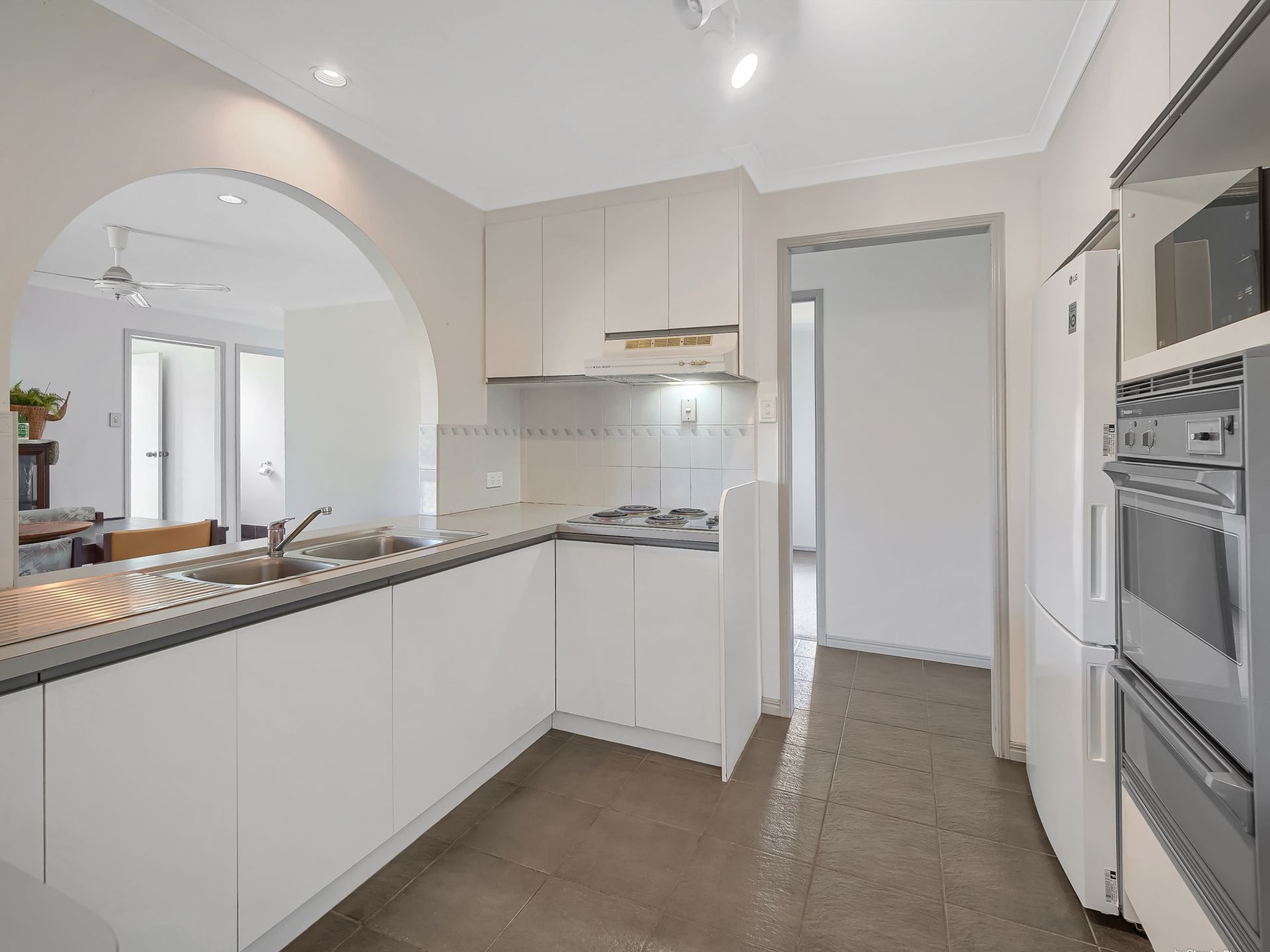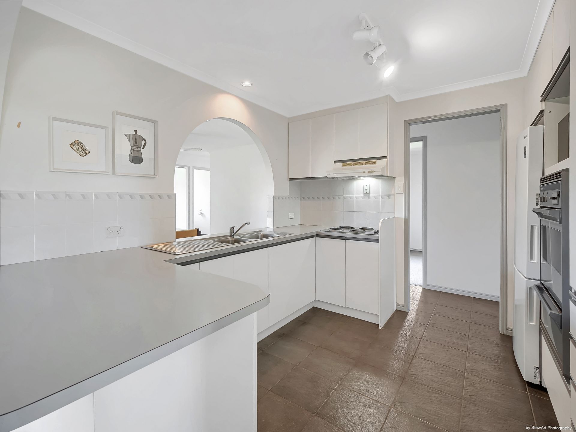 • A galley-style kitchen with ample bench and preparation space, plenty of storage, a breakfast bar, and a pantry