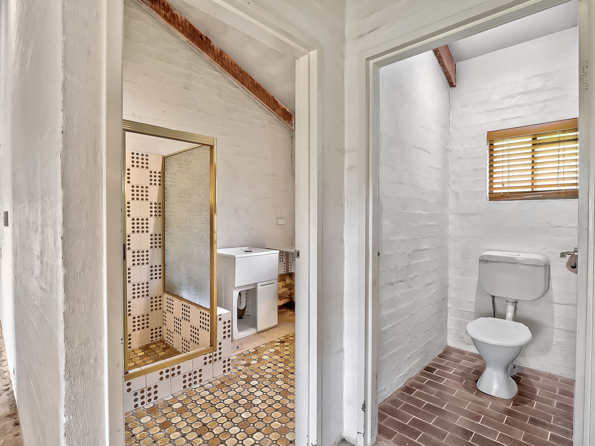 • The bathroom has a shower and a vanity and also includes the laundry plus a separate toilet