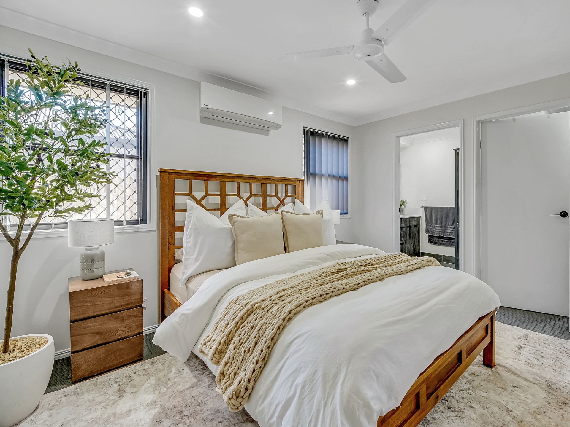• The main bedroom includes a ceiling fan, reverse cycle split system air conditioning, plus a walk-in wardrobe and lavish ensuite
