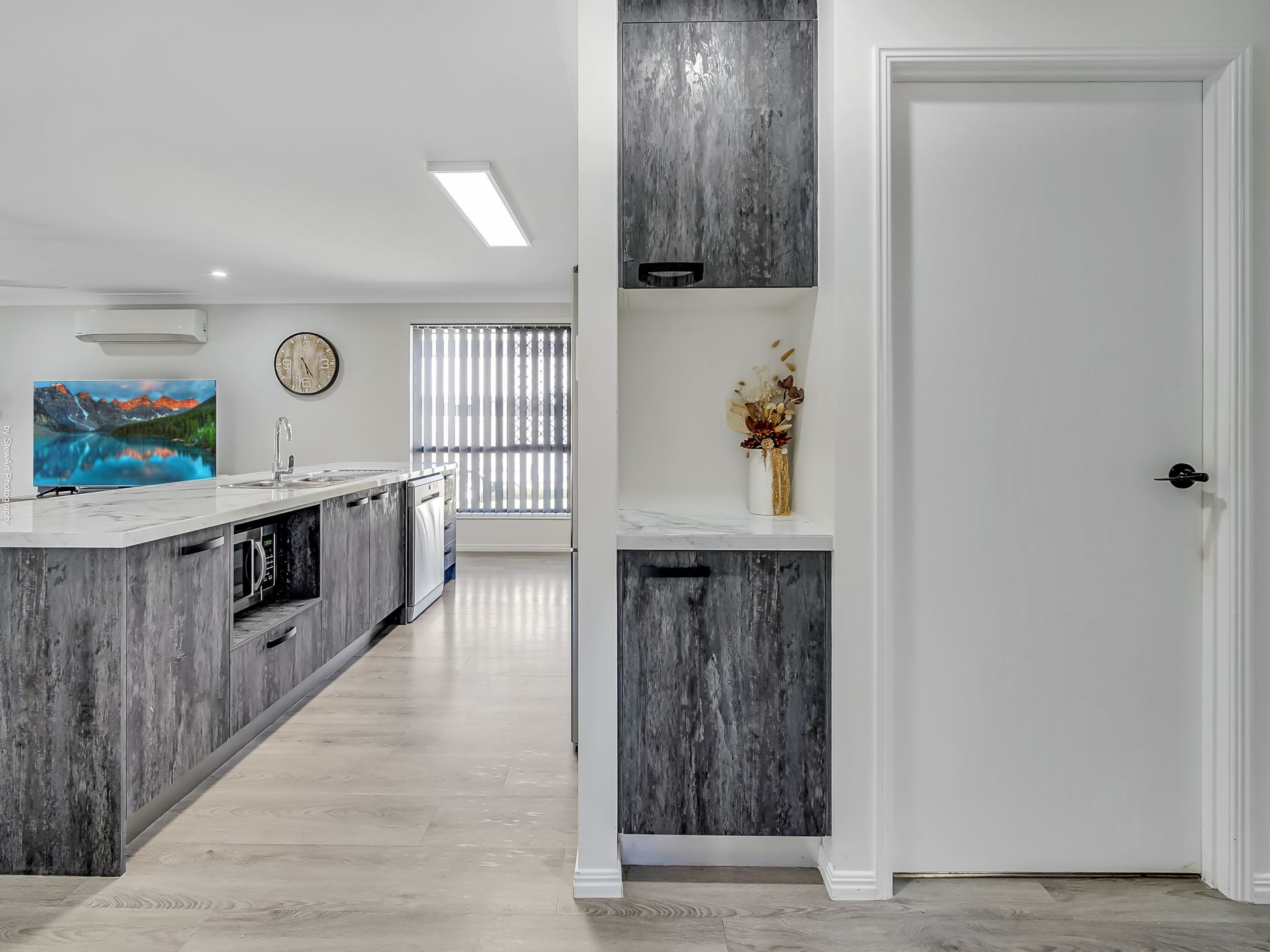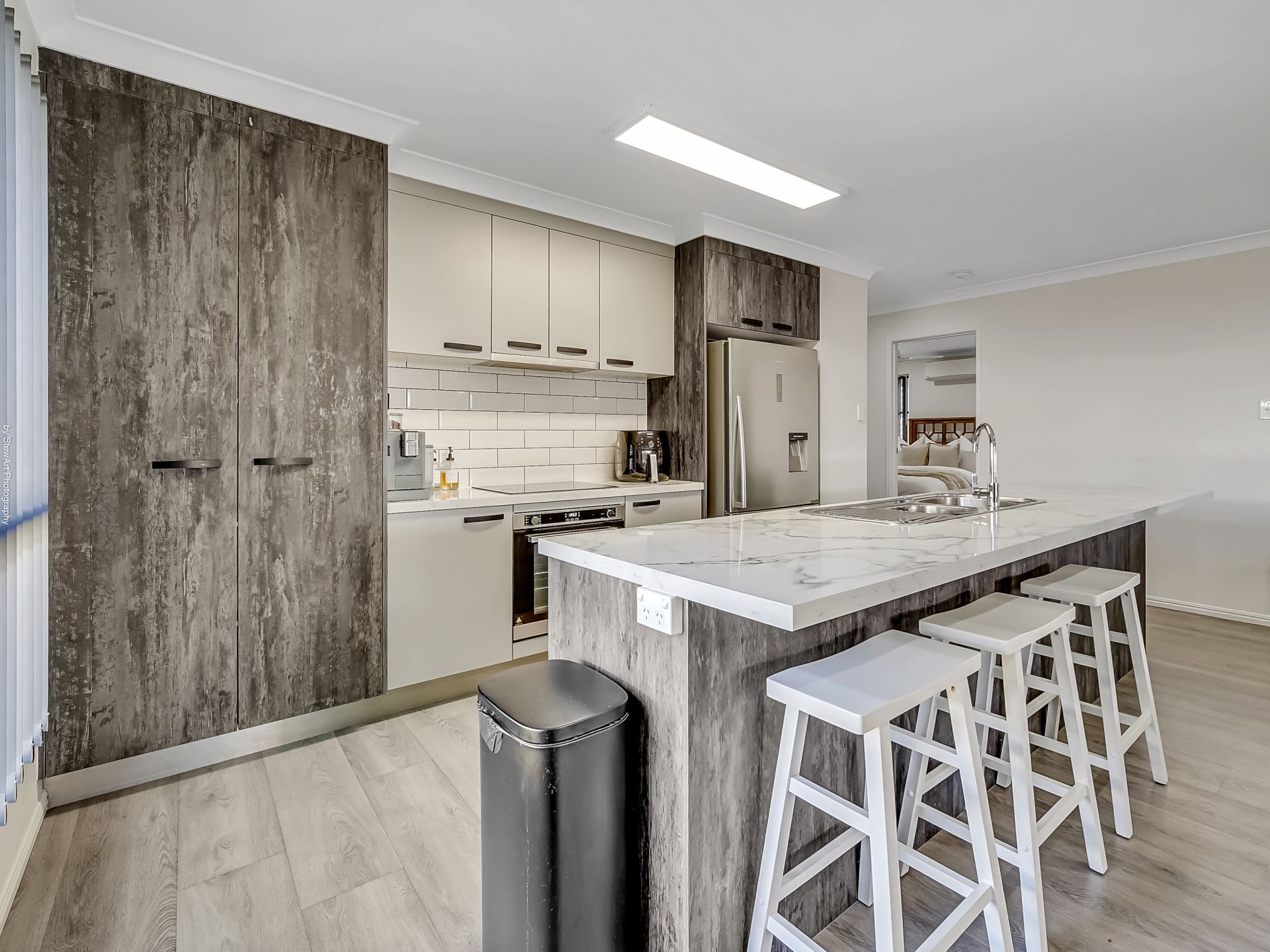 • A stylish kitchen with a large island preparation bench, a breakfast bar, loads of storage space, and a pantry