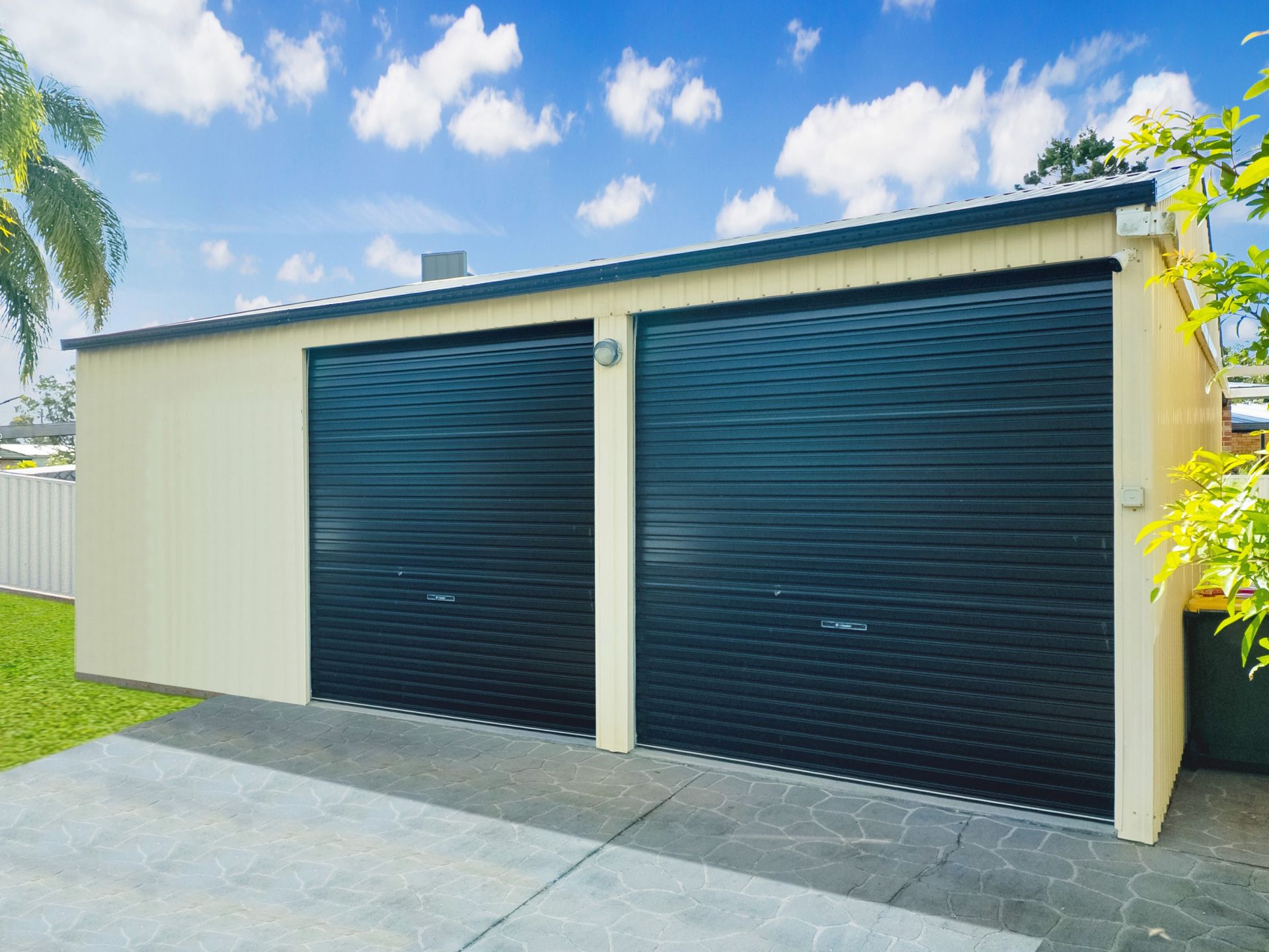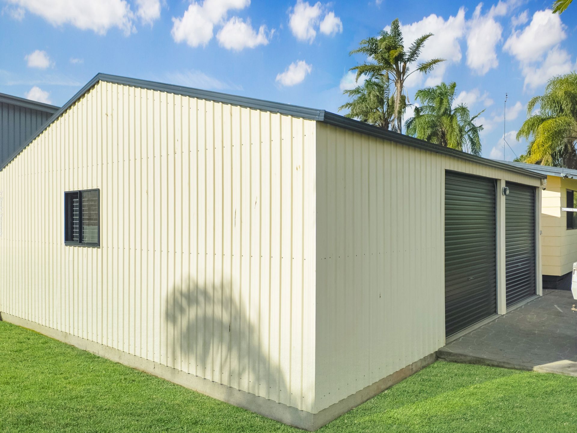 • A large three-bay shed with two roller door entry bays and a workshop with power connected