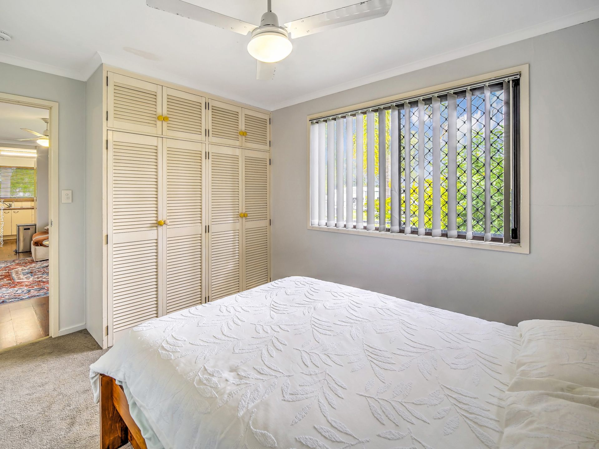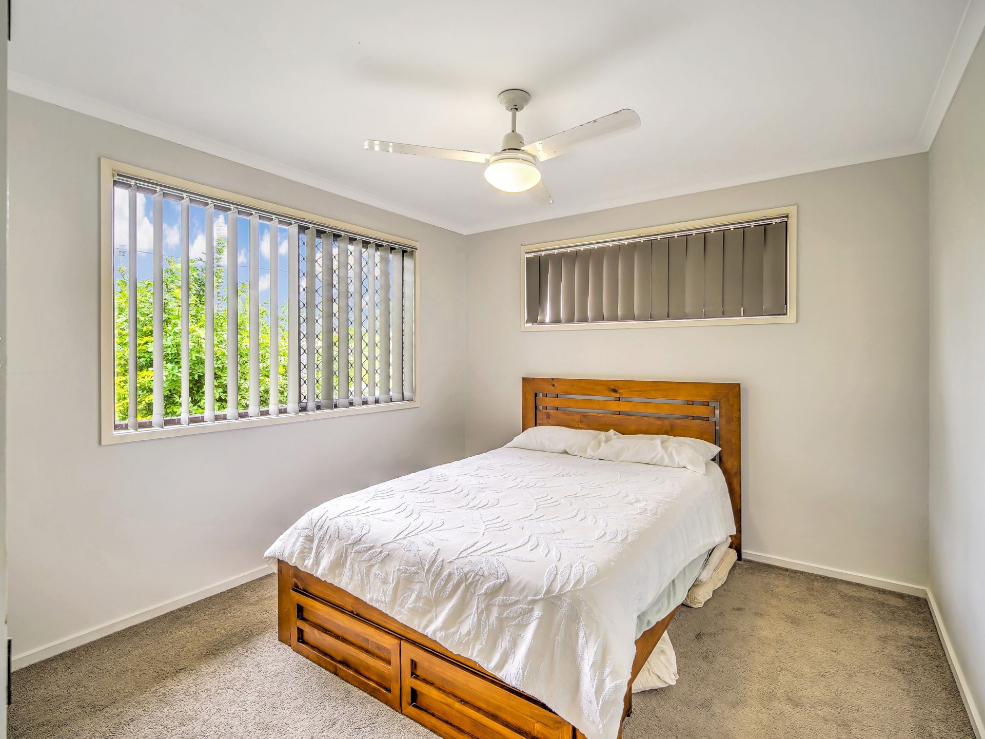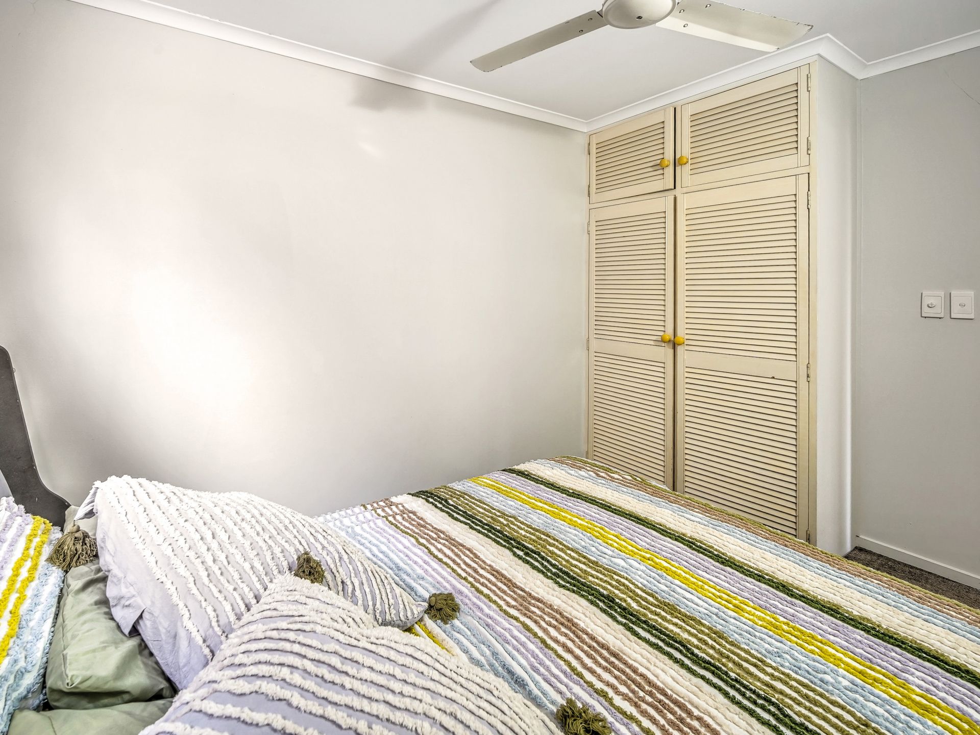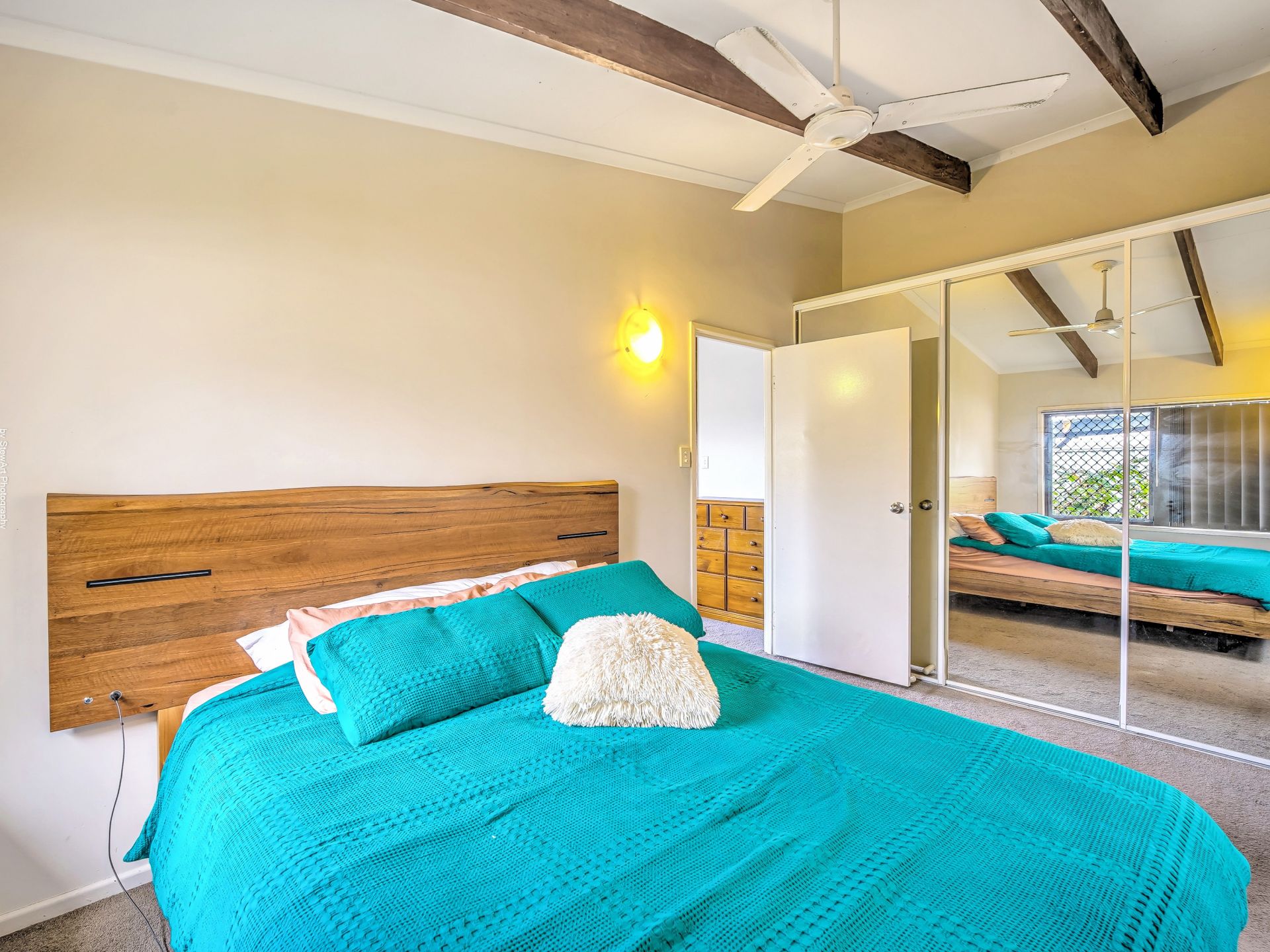 • The main bedroom includes a ceiling fan, split system air-conditioning, and a built-in wardrobe