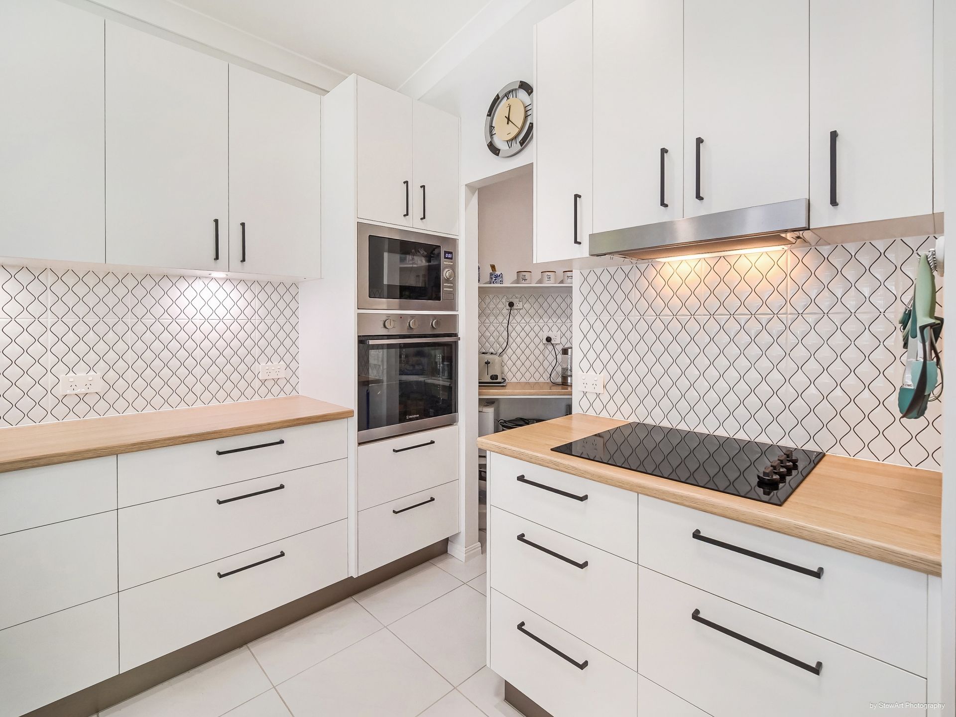• Quality appliances include an electric cooktop with a rangehood, a wall oven and microwave oven, plus plumbing provision for refrigerators with water filters and ice makers