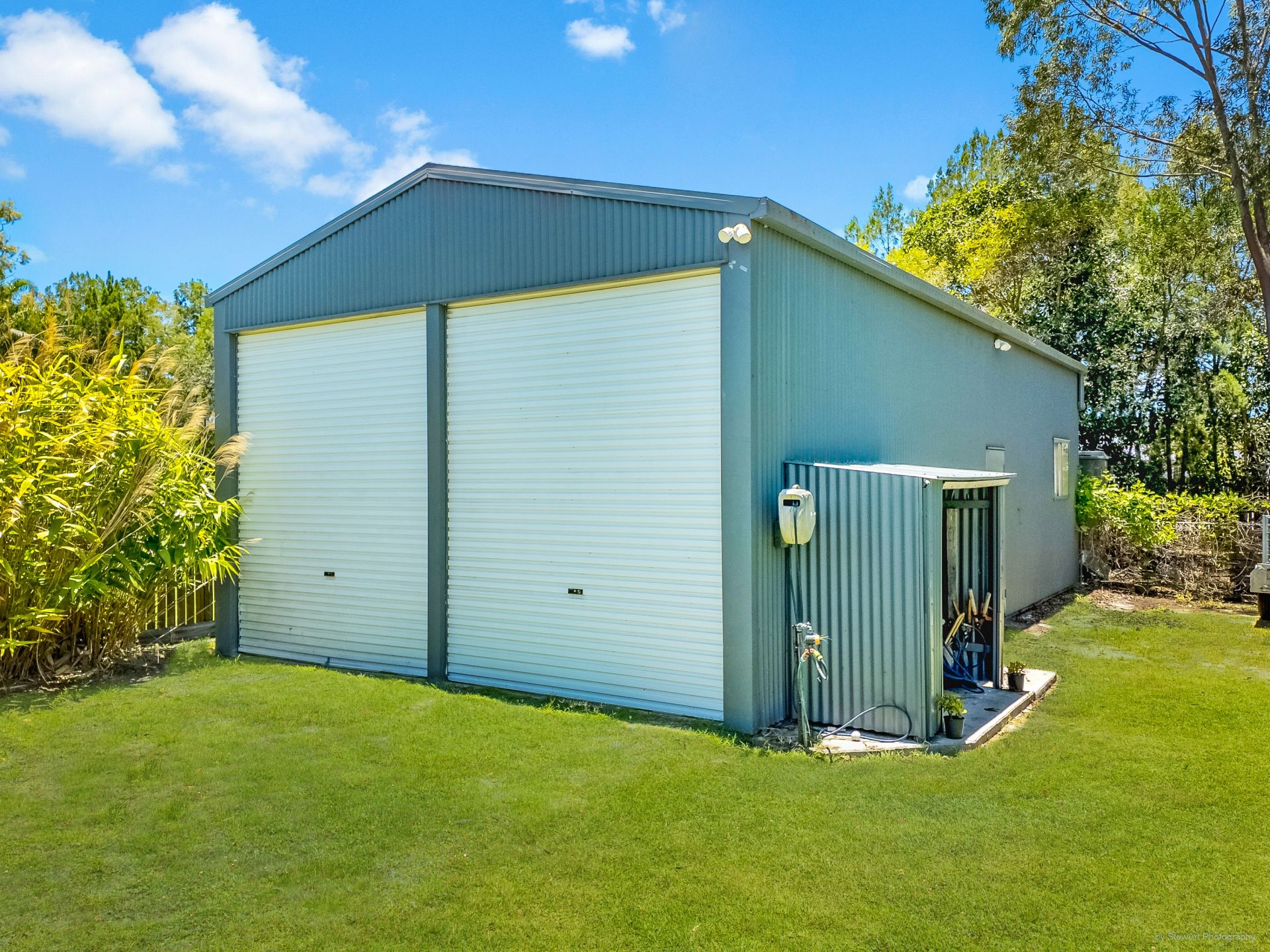 • A large approx. 12m x 7m double bay shed with a high 3.5m entry door, a partitioned workshop area, and power connected